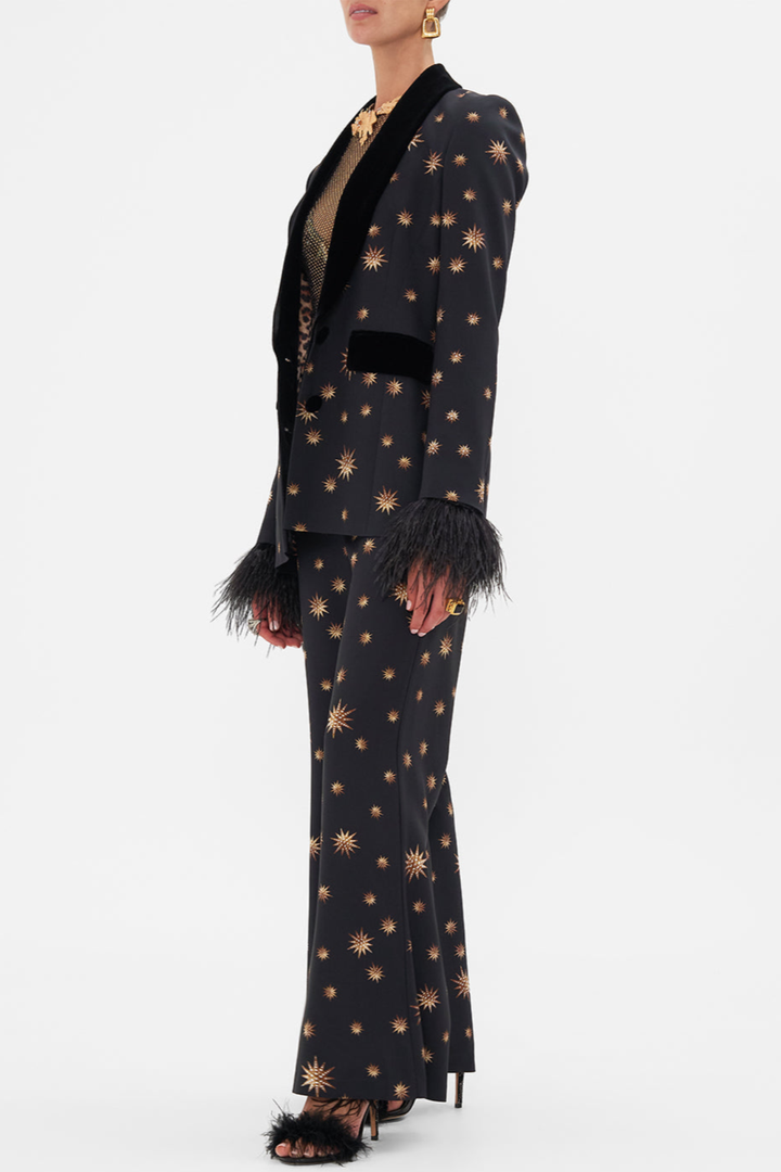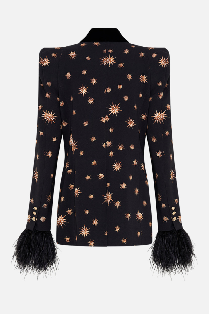 Merita Star Embroidered Feather Blazer & Pants Set