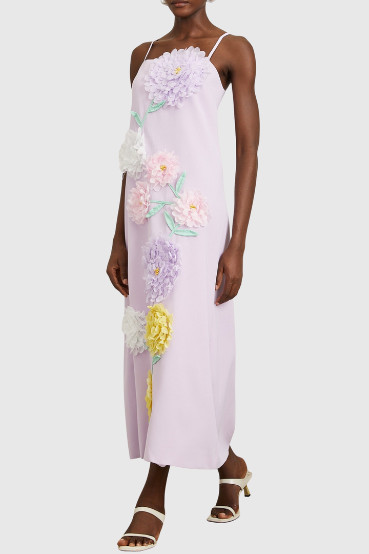 Mesa Strapless Floral Embroidered Maxi Dress - Purple