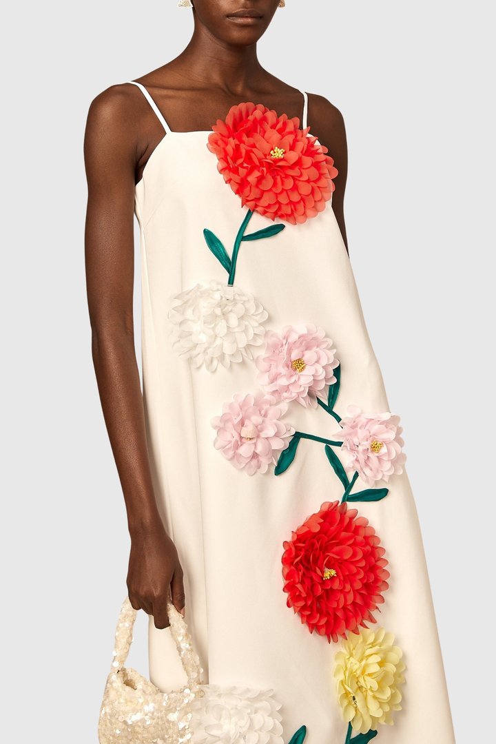 Mesa Strapless Floral Embroidered Maxi Dress - White