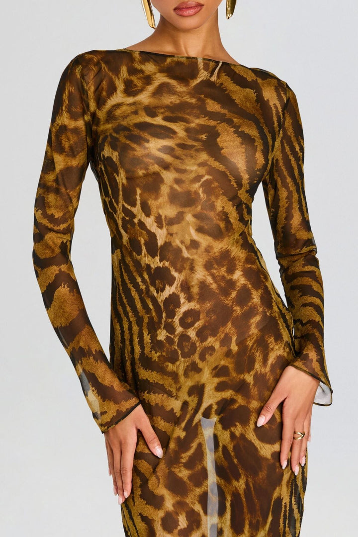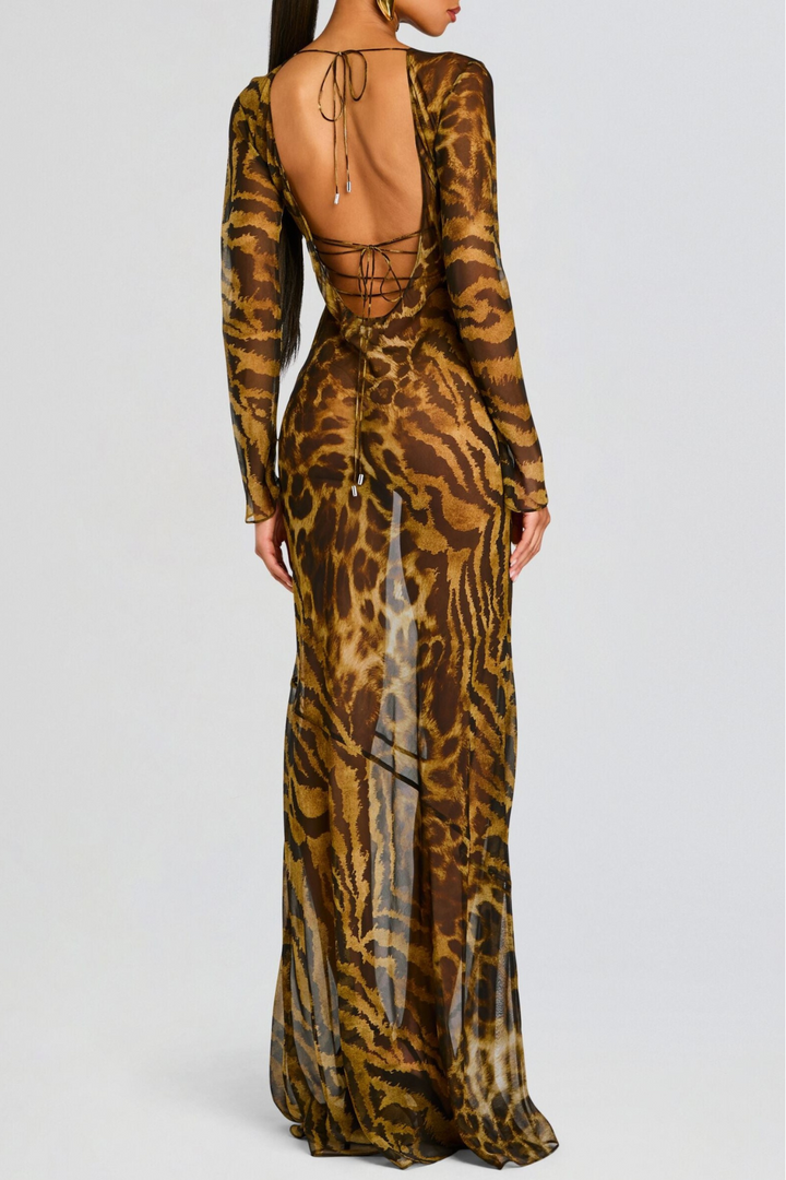 Indulge in luxury with the Milada Cheetah Backless Silk Maxi Dress. Made from the finest silk, this dress exudes elegance with its leopard print and backless design. Perfect for any upscale event, this dress is guaranteed to turn heads and make a sophisticated statement.