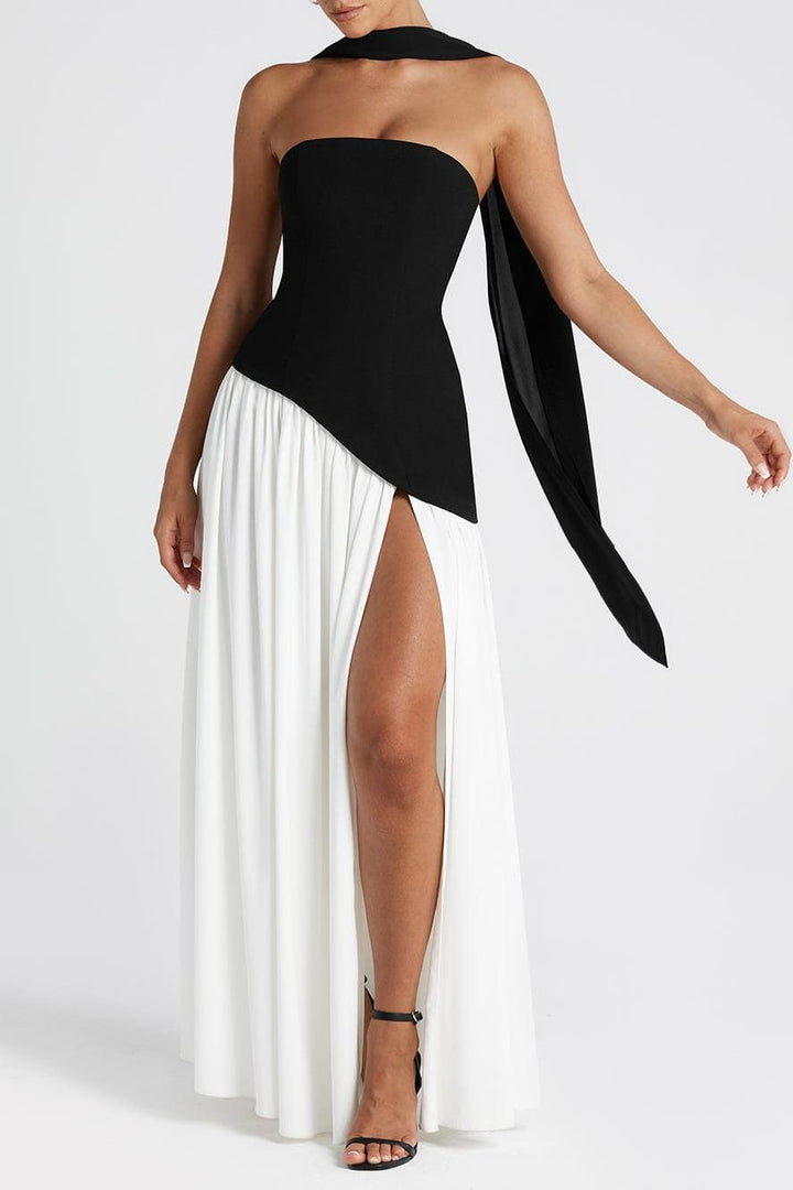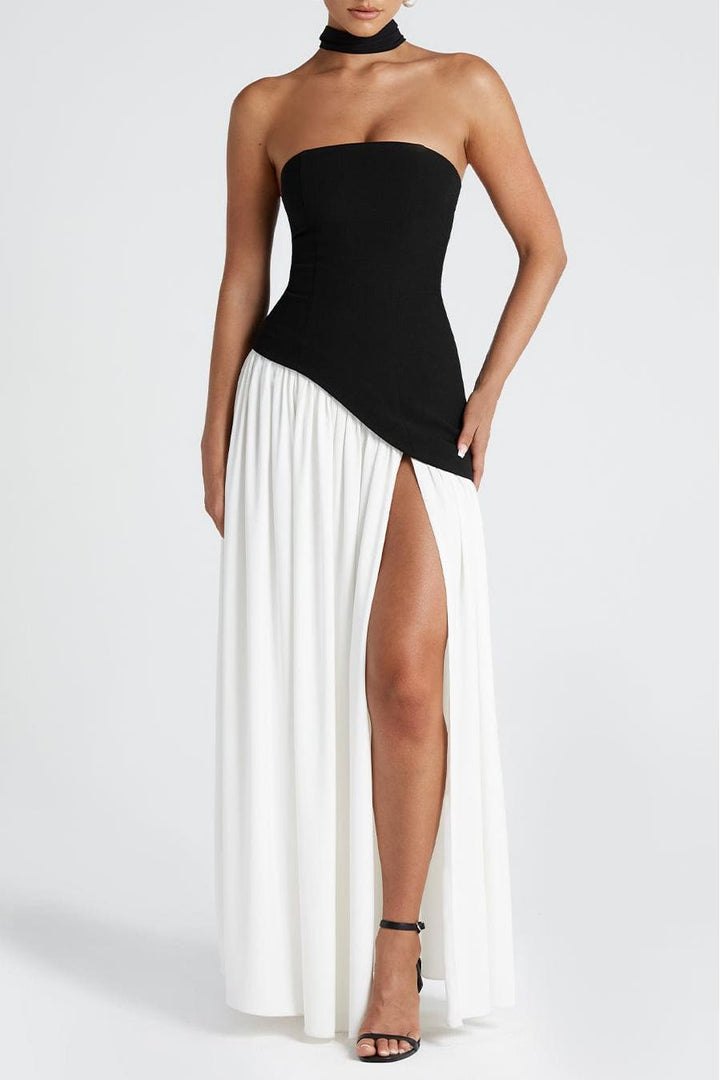 Elevate your eveningwear with the Miloni Strapless Split Maxi Dress, designed for graceful sophistication. This elegant piece features a strapless neckline that accentuates your shoulders, paired with a daring side split that adds movement and allure. Crafted to enhance your silhouette, it offers a refined look perfect for formal events or upscale occasions.
