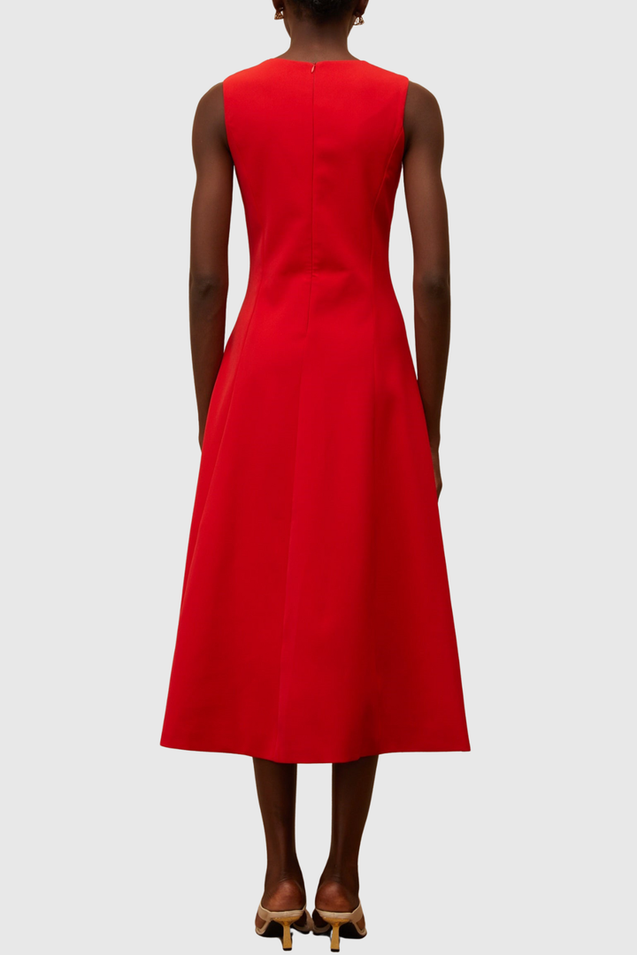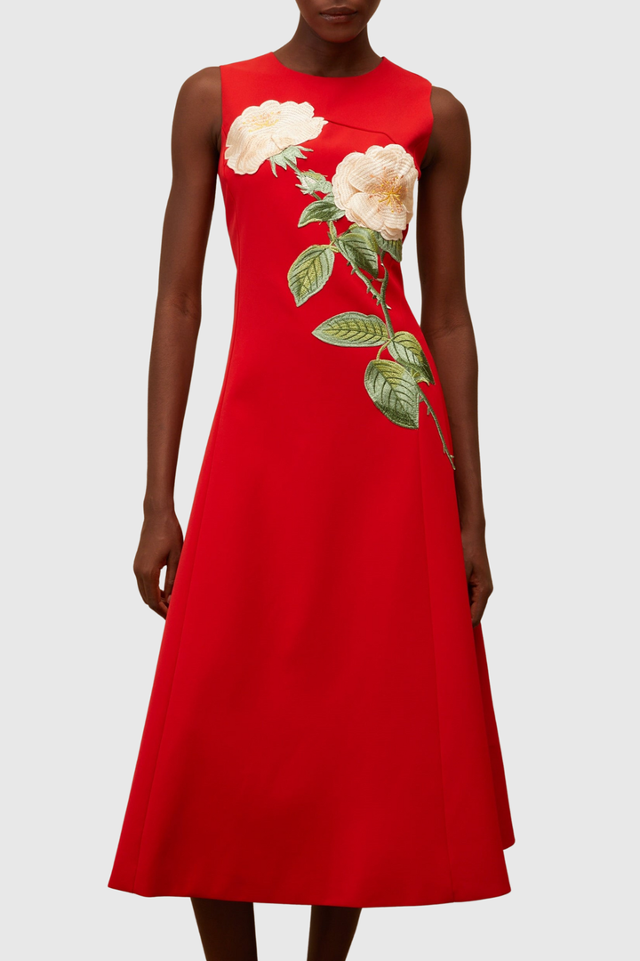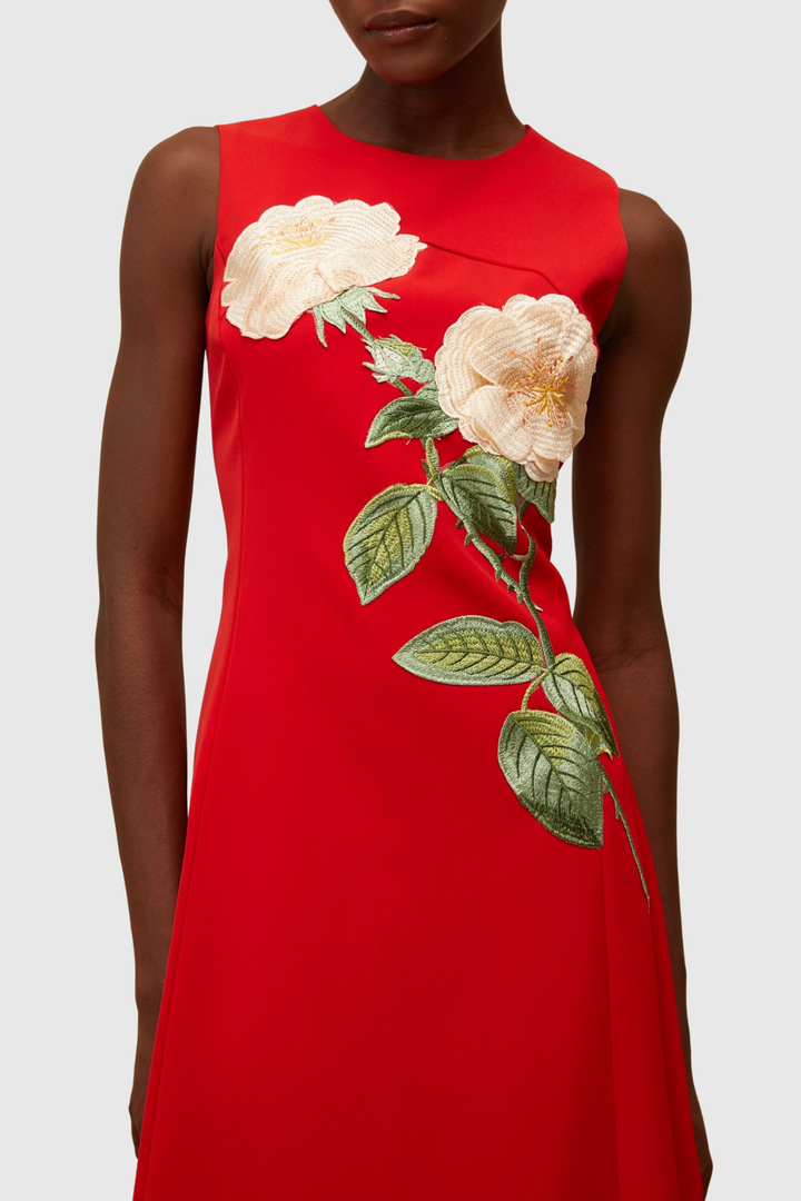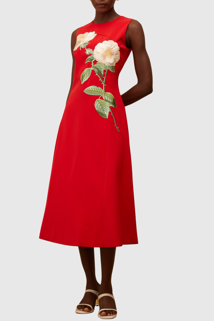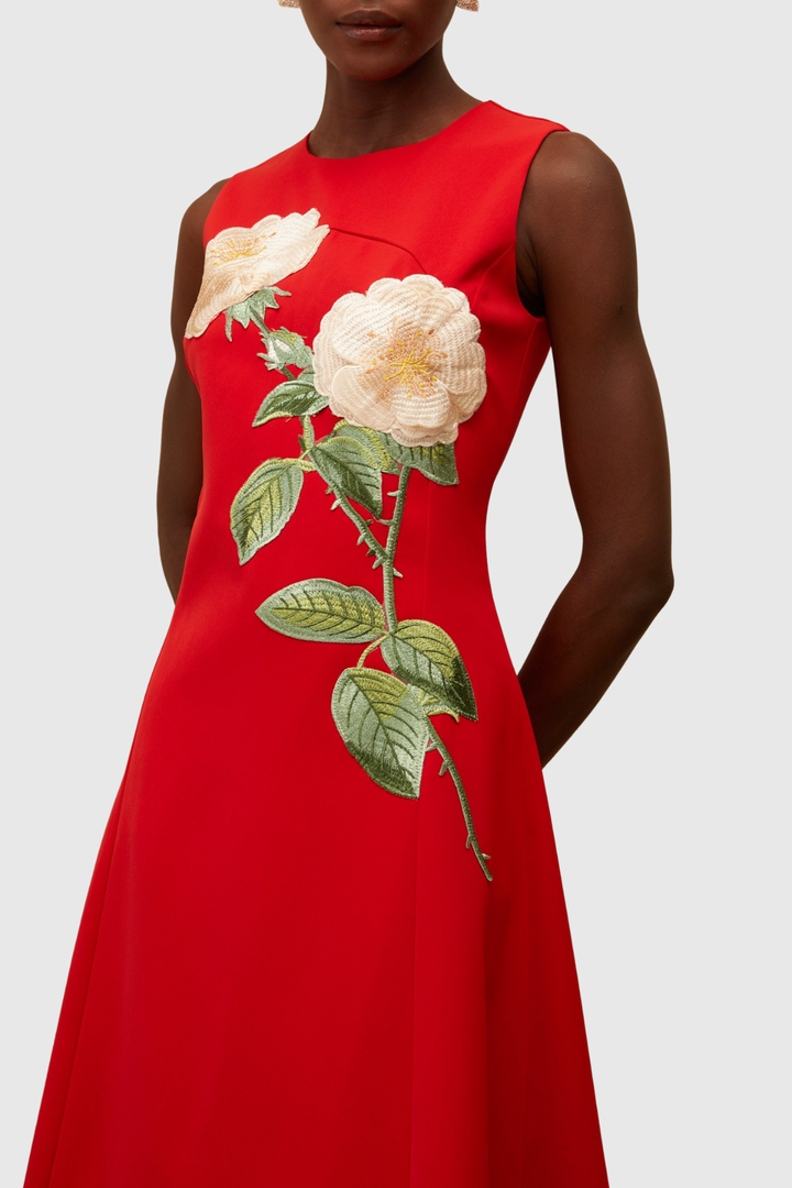 Mimoza Floral Appliqué Sleeveless Midi Dress - Red