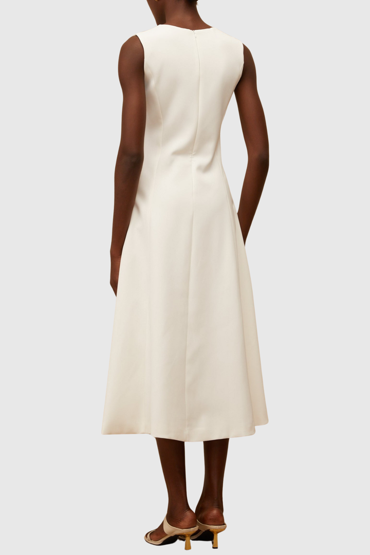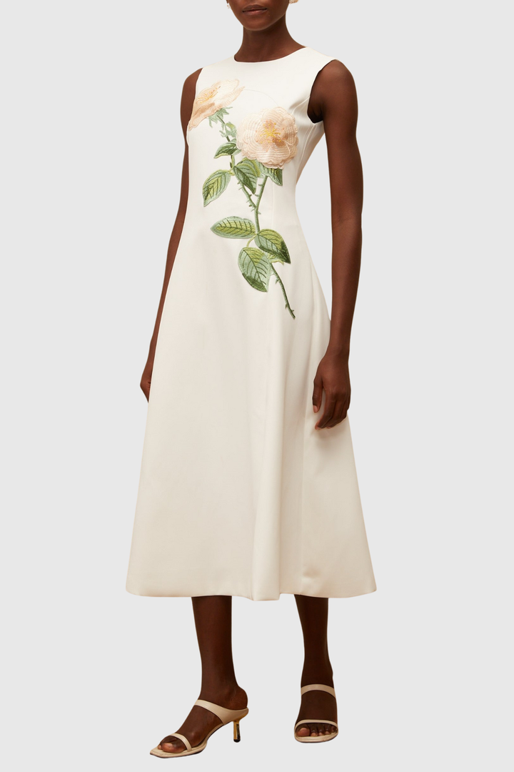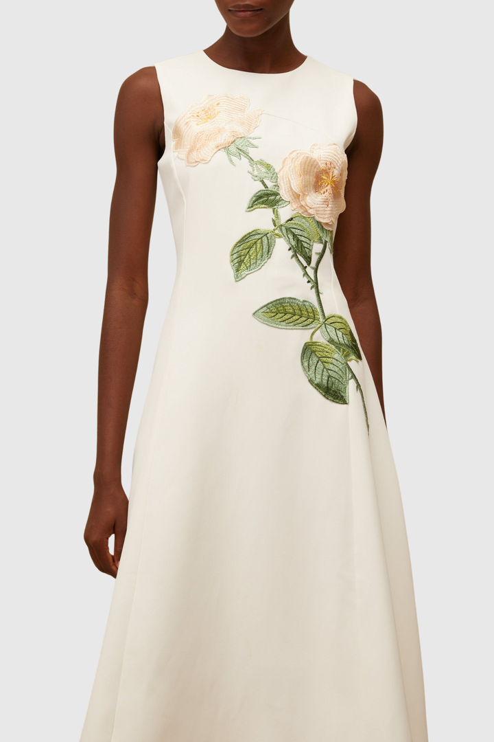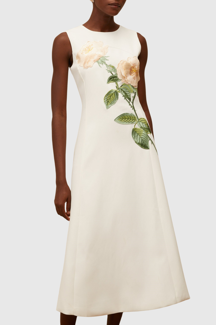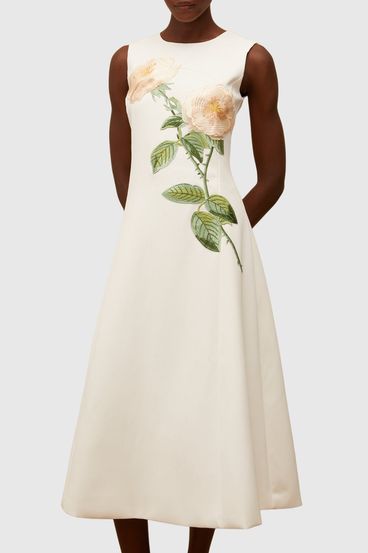 Mimoza Floral Appliqué Sleeveless Midi Dress - White