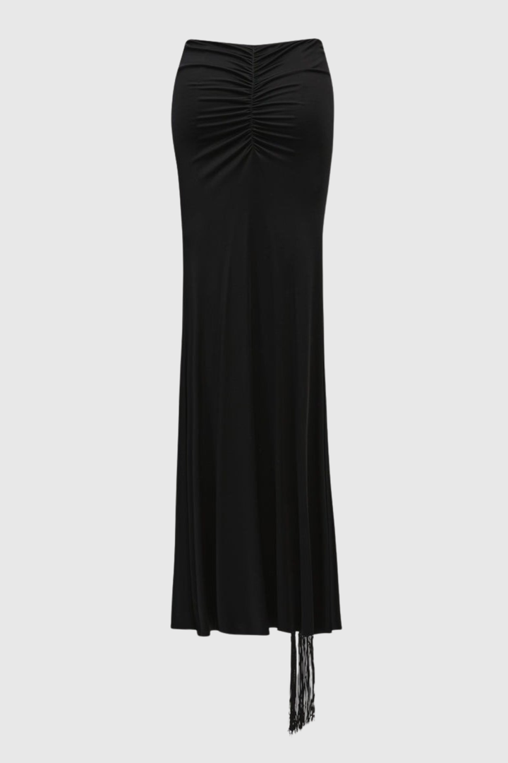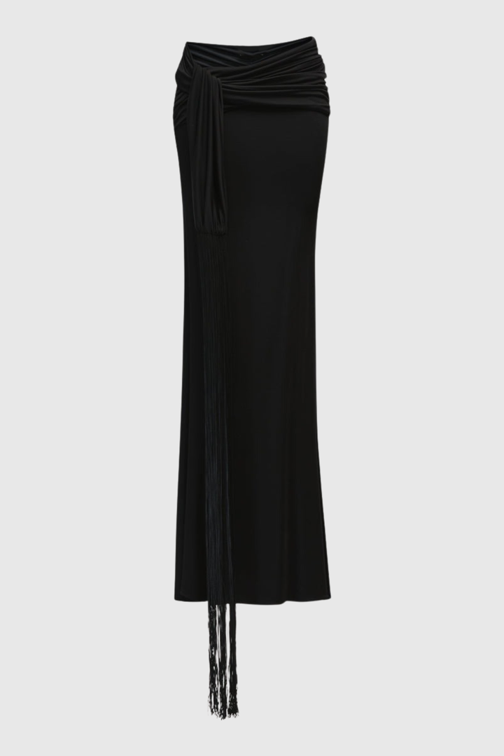 Elevate your evening wardrobe with this striking two-piece set that seamlessly blends modern edge with timeless elegance. The halter bodysuit features strategic cutout detailing that creates visual interest while maintaining refined sophistication, paired with a flowing fringe skirt that adds movement and dimension. Perfect for upscale events, nights out, or when you want to make a memorable impression. The coordinated design ensures effortless styling, while quality construction promises comfort throughout the night. A versatile investment piece that transitions beautifully from cocktail hour to dancing.