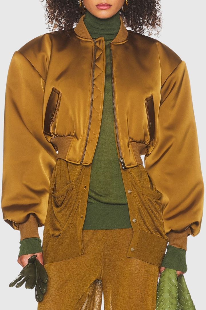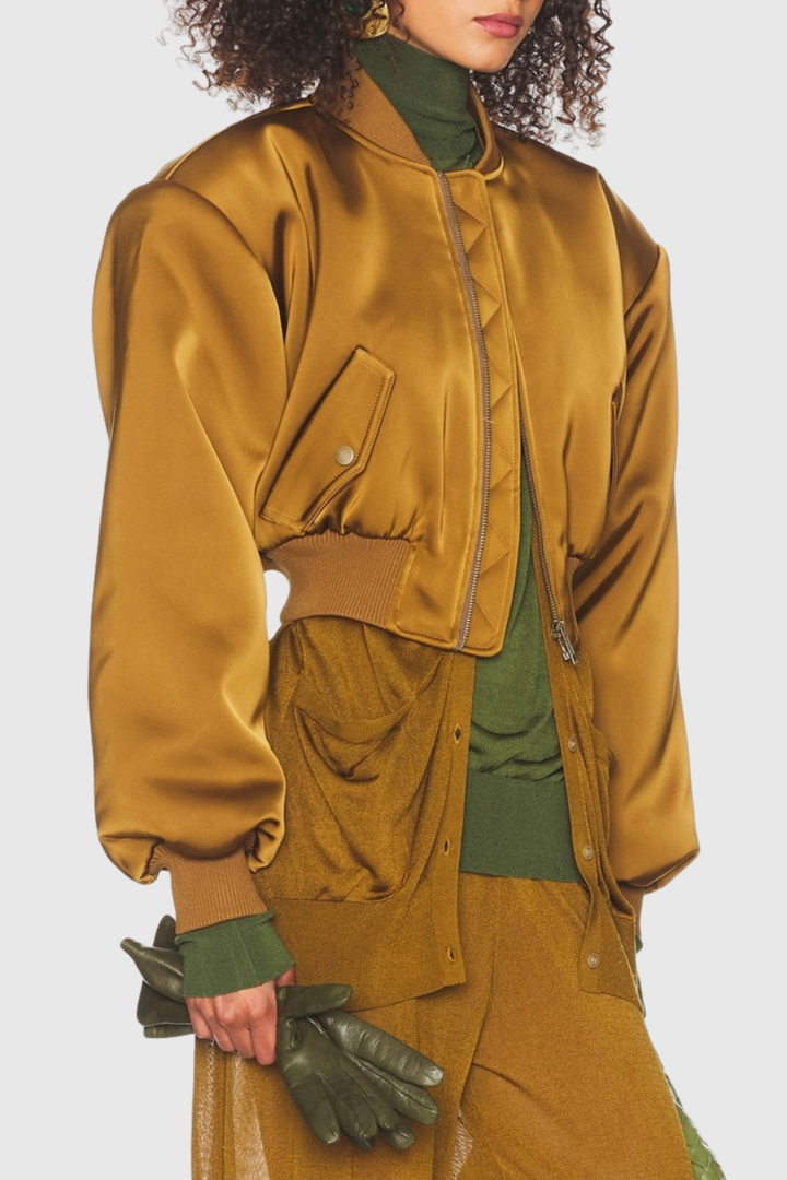 Nabila Satin Bomber Jacket - Gold