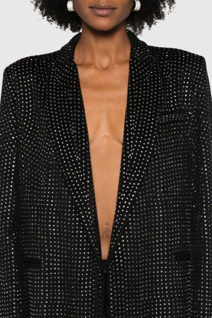 Nairob Crystal Embellished Single Breasted Coat - Black