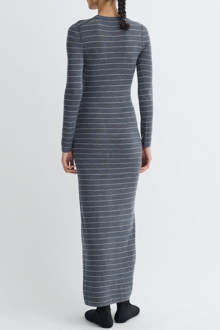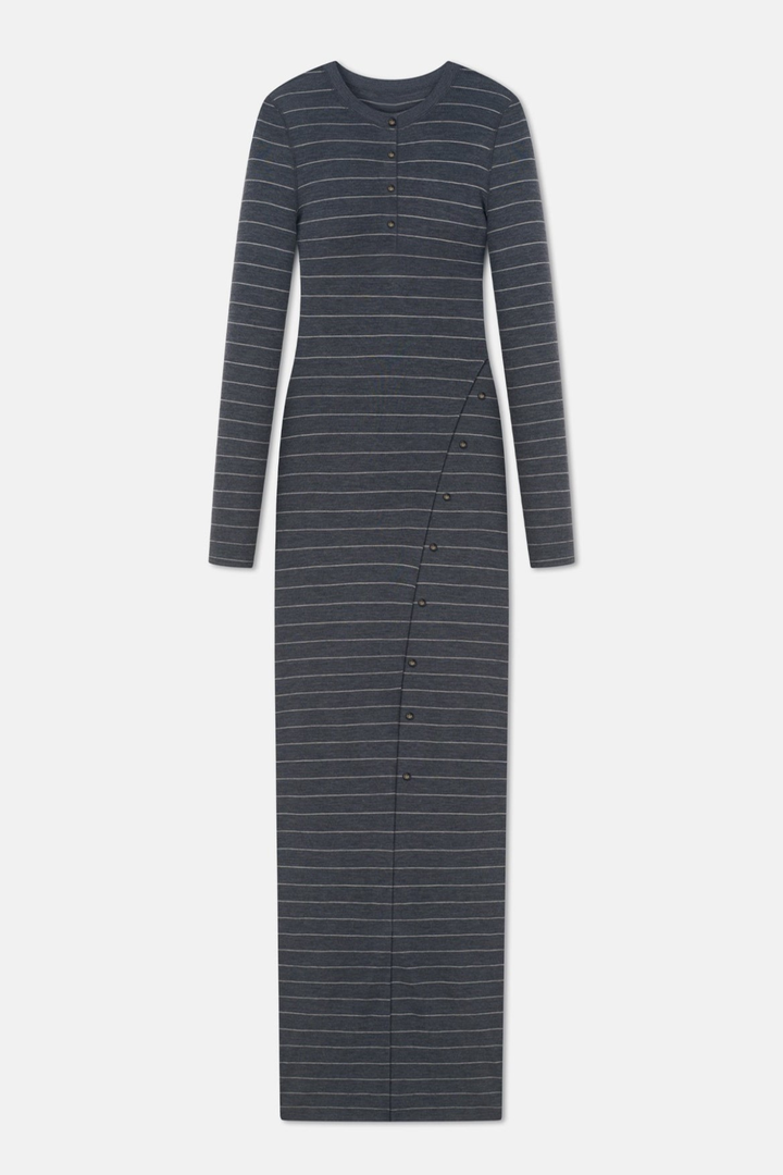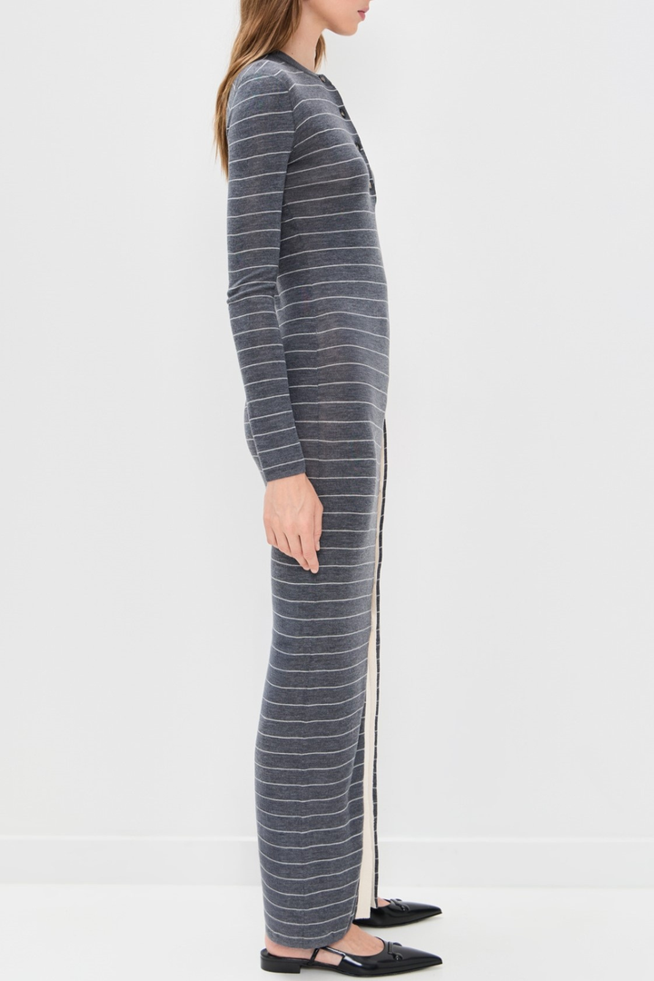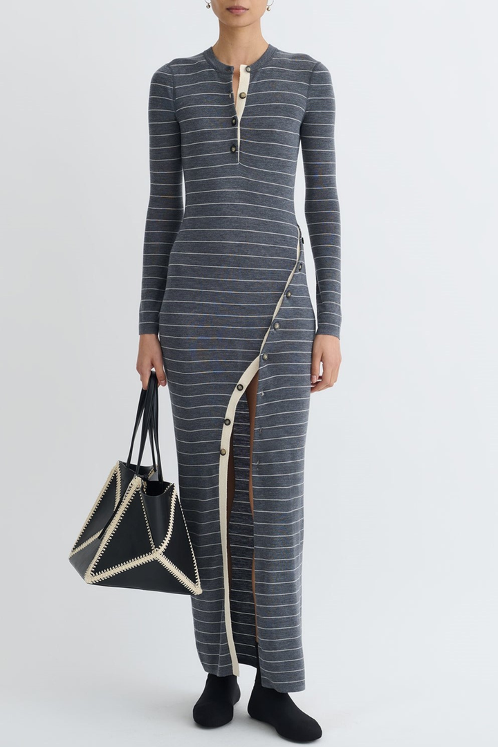 Nasir Striped Wool Asymmetric Buttoned Maxi Dress