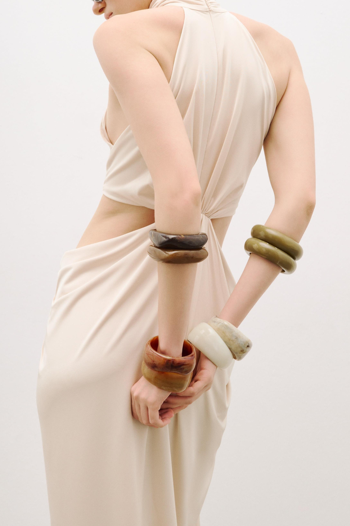 The Nelya Sleeveless Rope Cutout Maxi Dress combines contemporary elegance with daring design. This floor-length silhouette features strategic rope cutouts that create visual intrigue while maintaining refined sophistication. The sleeveless cut offers versatility for layering or standalone wear, making it ideal for evening events, upscale gatherings, or statement-making occasions. Crafted for the modern woman who appreciates bold yet tasteful fashion, this dress delivers effortless glamour with architectural detail.