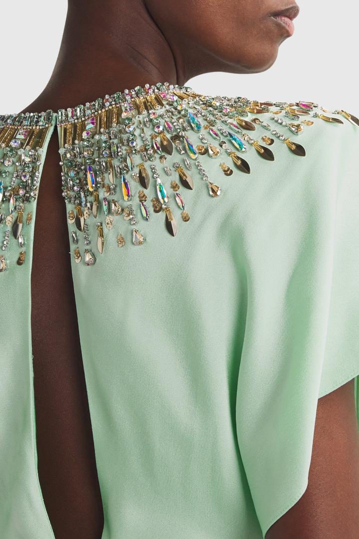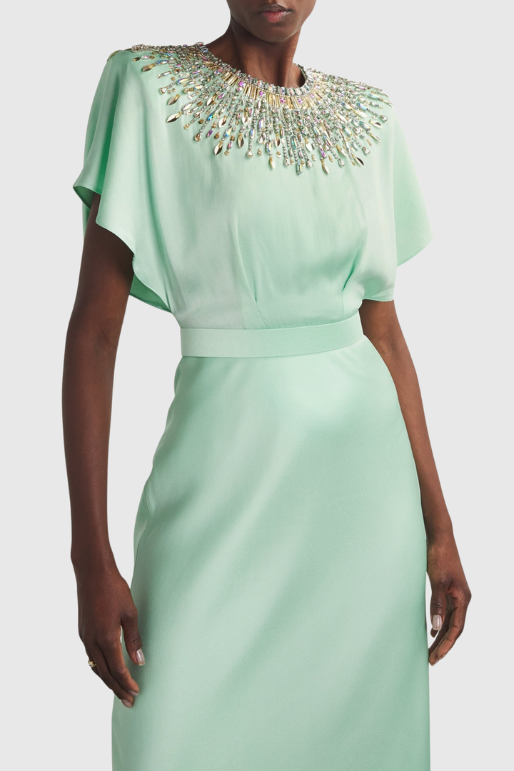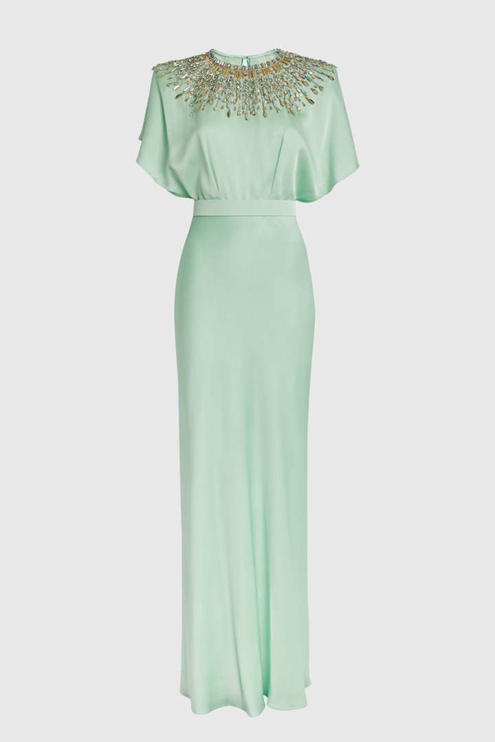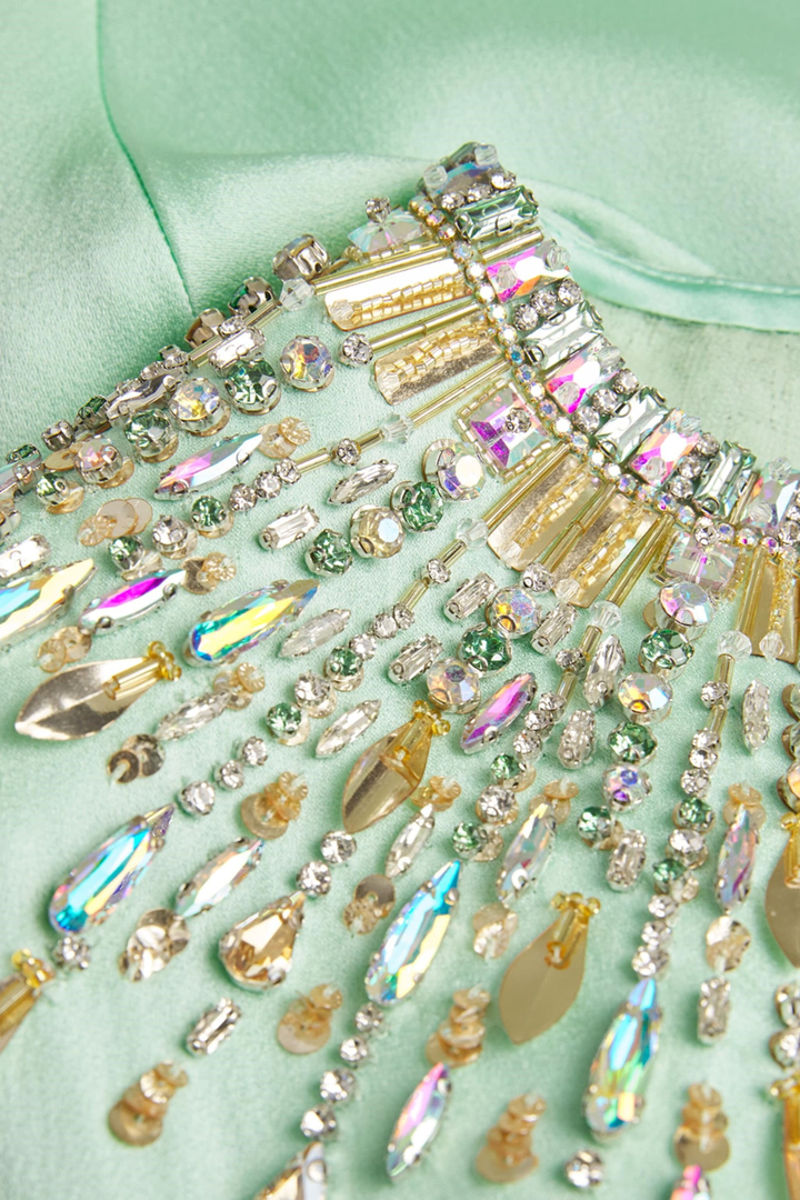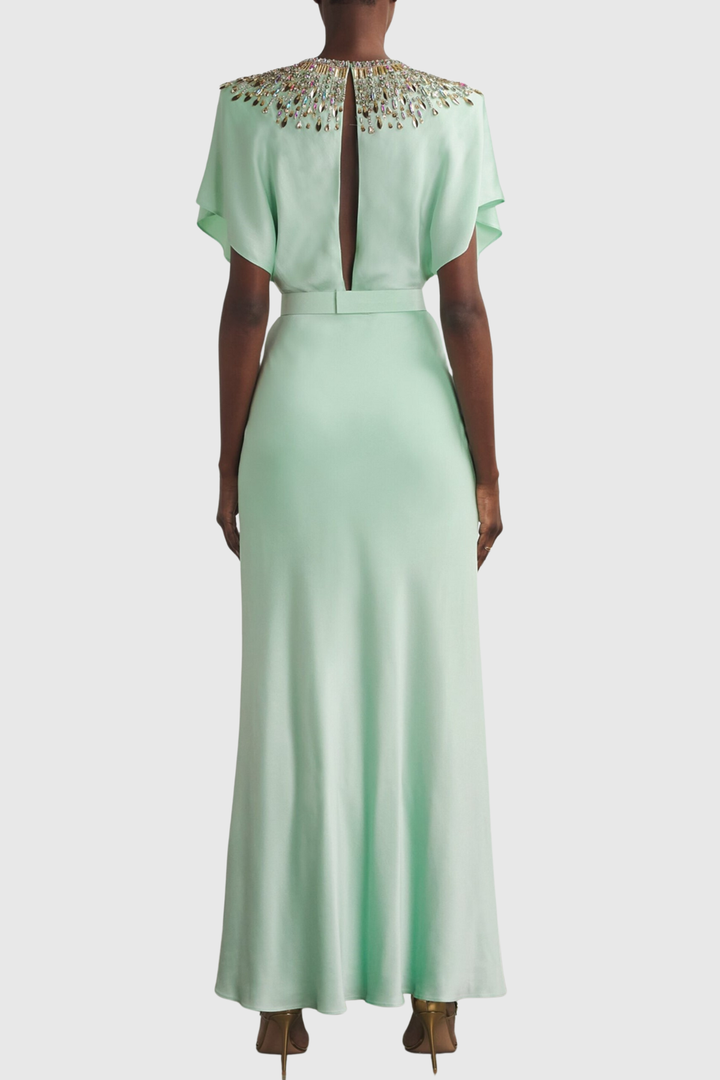 Nikola Sequin Embellished Satin Maxi Dress - Mint