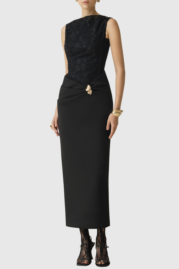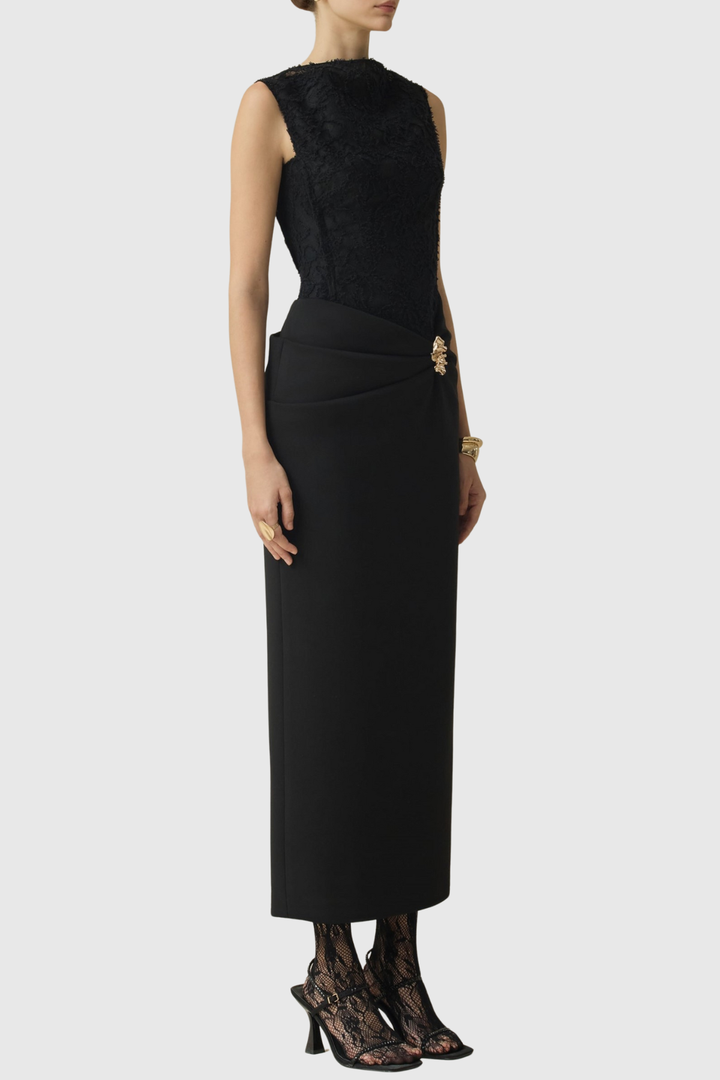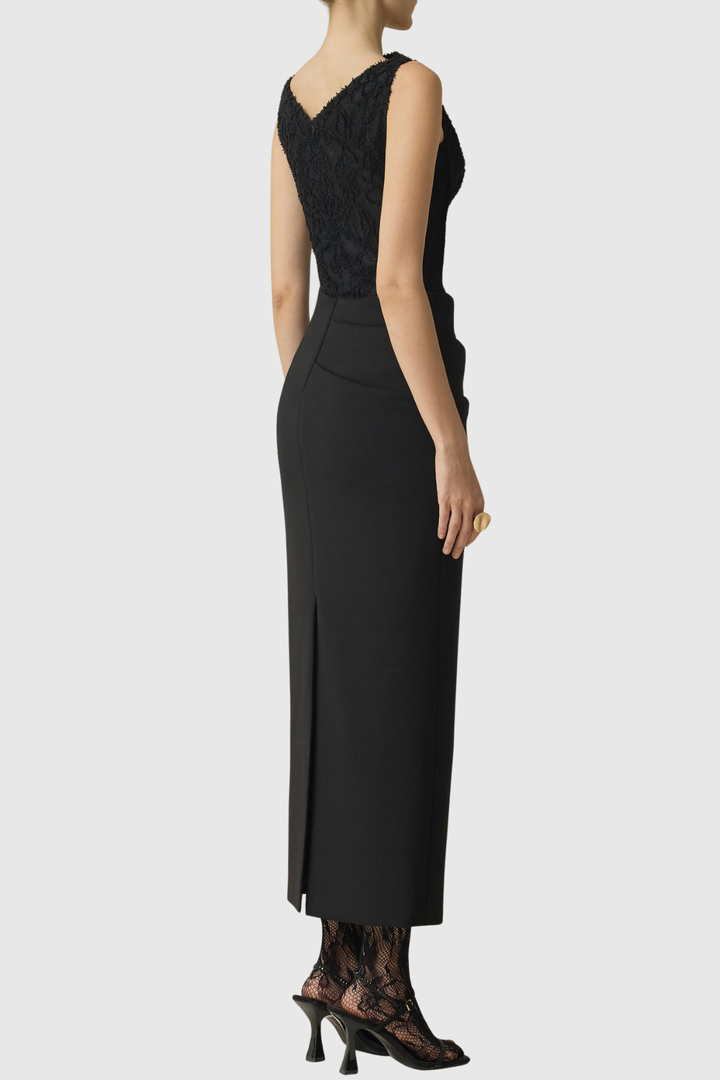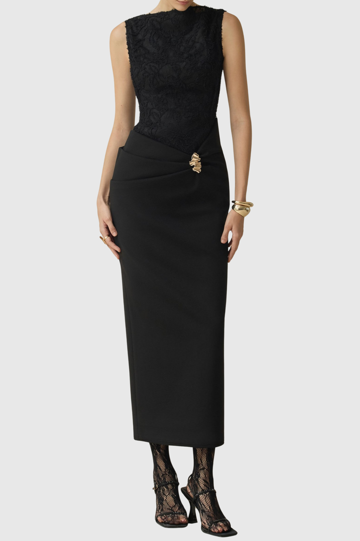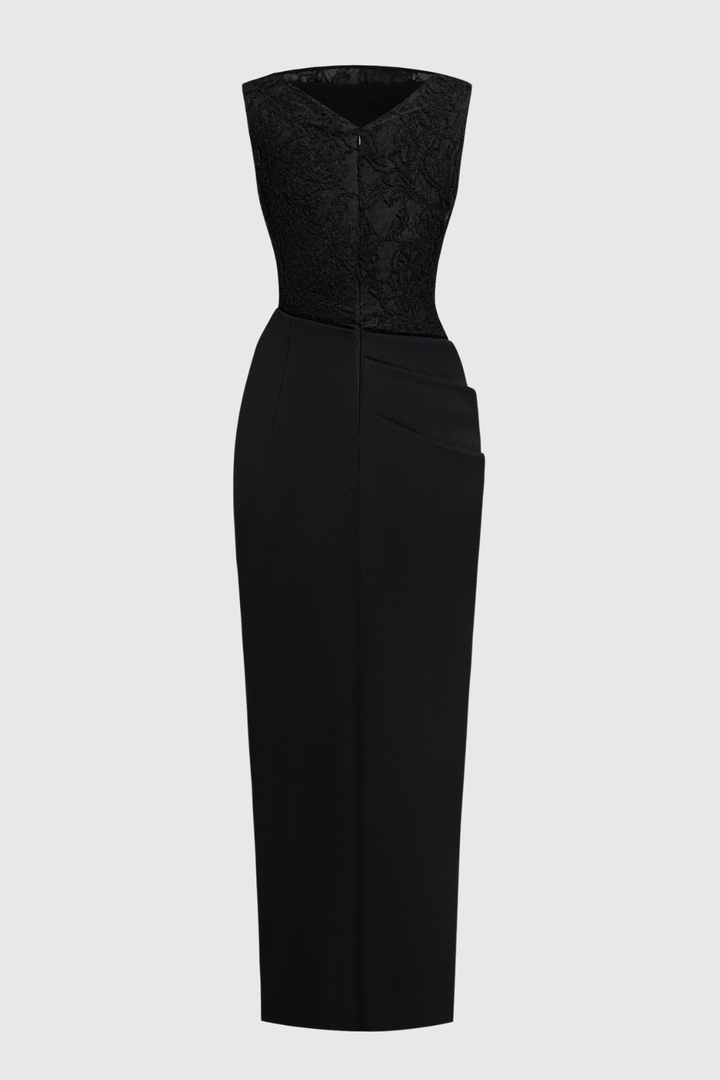 Elevate your wardrobe with the Obsidia Jacquard Sleeveless Midi Dress, a refined piece that seamlessly transitions from day to evening. The intricate jacquard weave creates visual depth and texture, while the sleeveless silhouette offers versatile styling options. Cut to a graceful midi length, this dress provides an elegant, understated look that works beautifully for professional settings, special occasions, or elevated casual wear. The structured fabric ensures a polished appearance that flatters various body types.