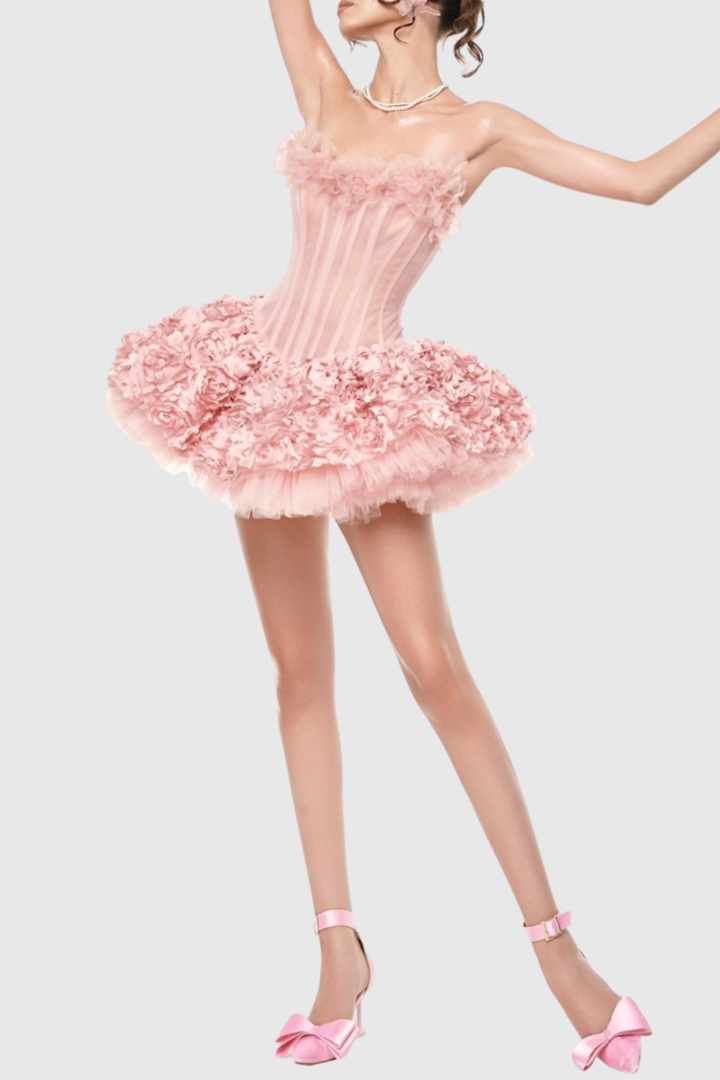 Oharo Floral Strapless Corset Mini Dress