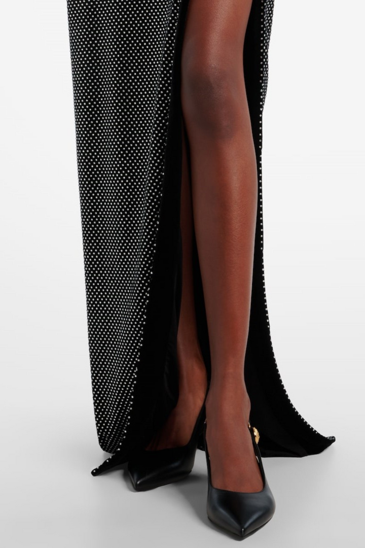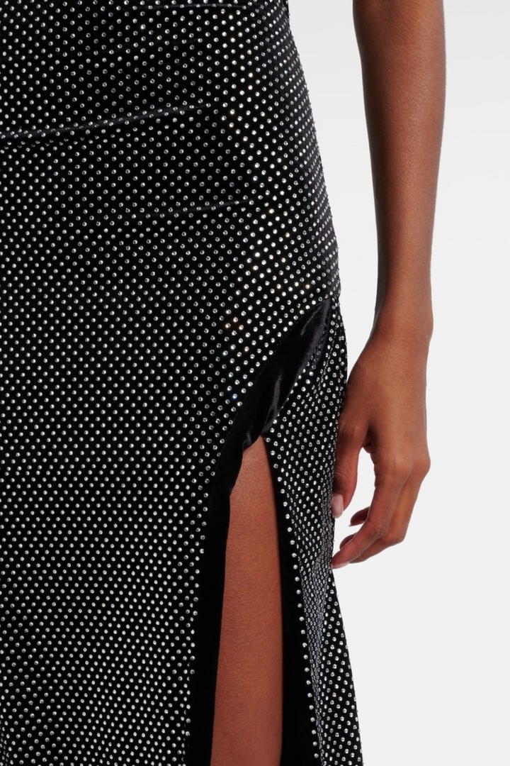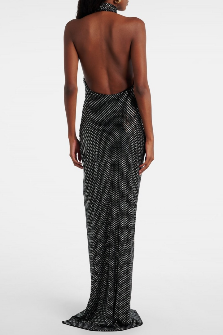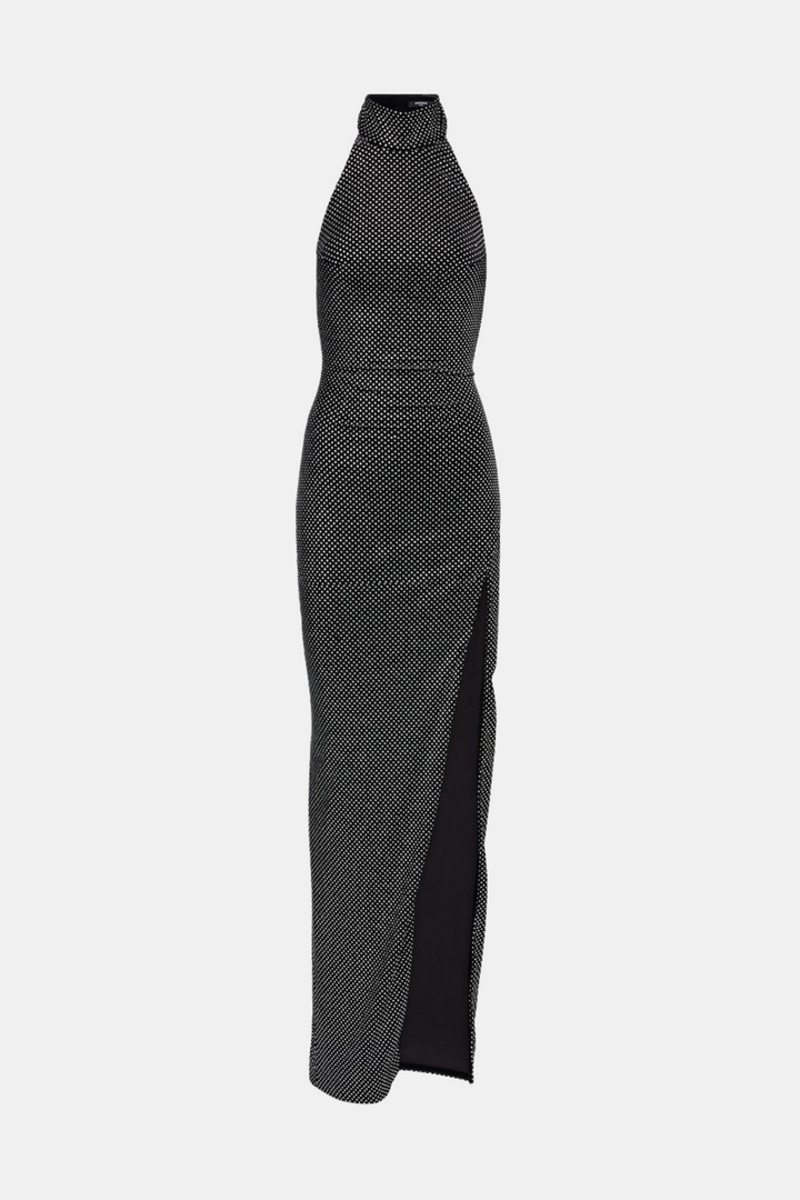 Oksana Halter Crystal Embellished Split Maxi Dress