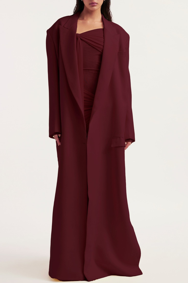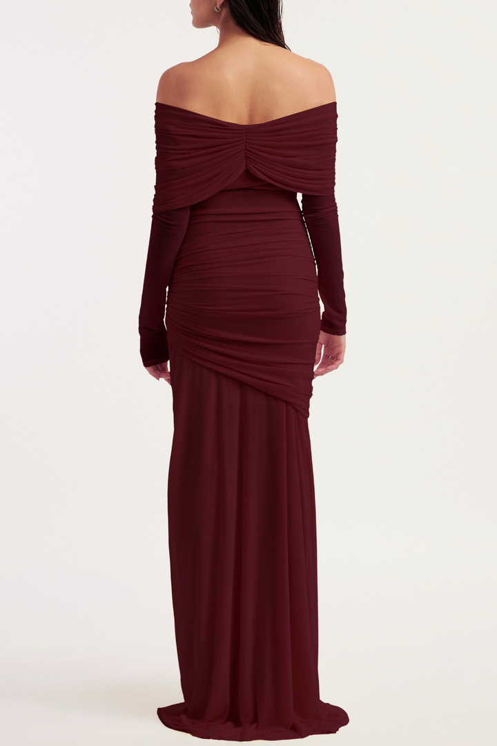 Olaya Off Shoulder Ruched Knot Maxi Dress - Wine