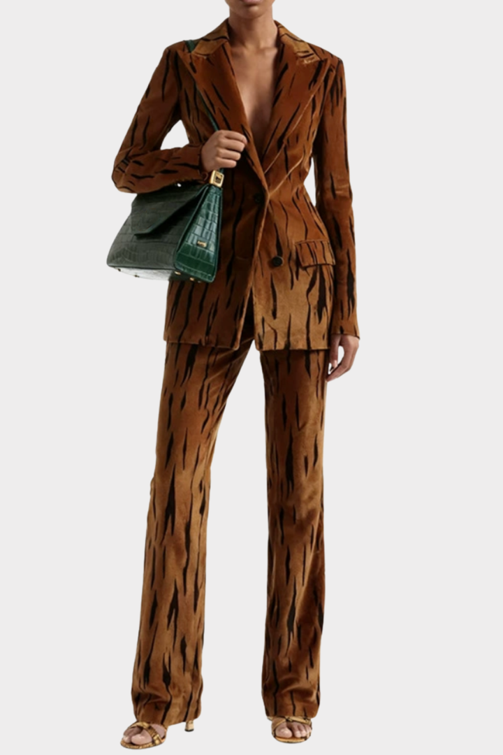 Omaira Tiger Print Velvet Blazer & Pants Set