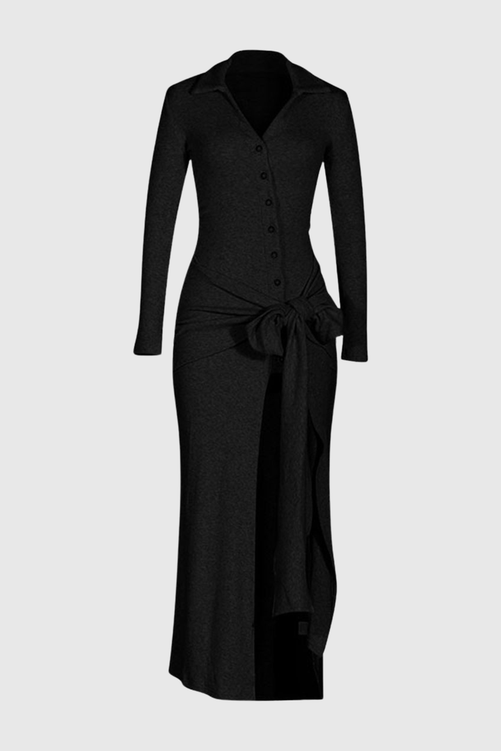 Omara Bow Tie-waist Knit Midi Dress - Black