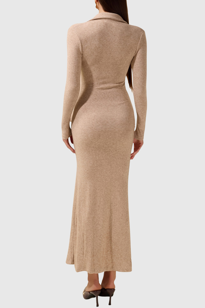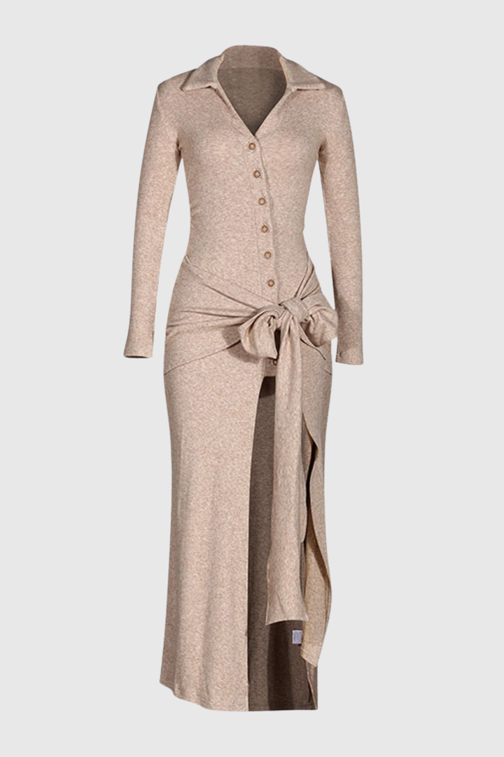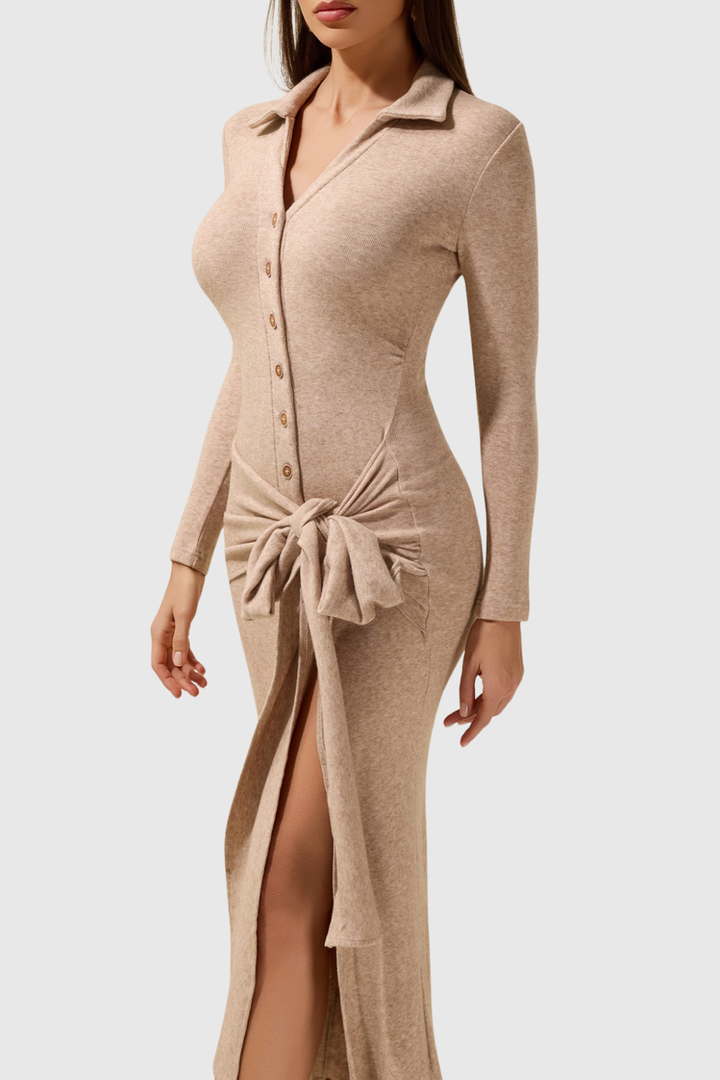 Omara Bow Tie-waist Knit Midi Dress - Khaki