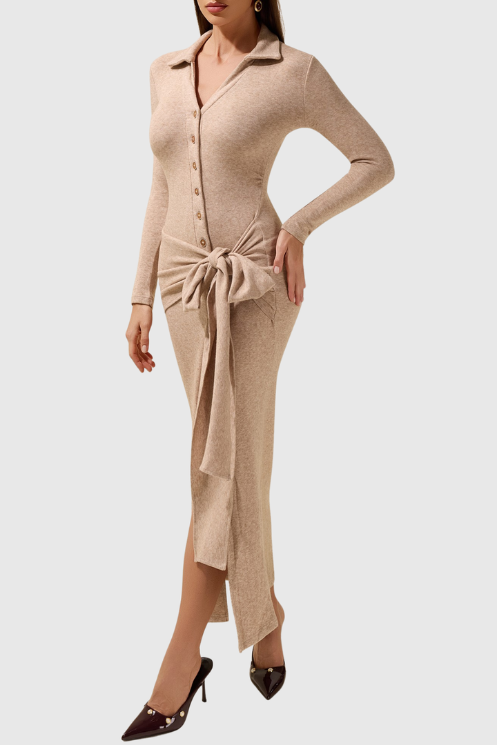 Elevate your wardrobe with the Omara Bow Tie-waist Knit Midi Dress, a refined piece that seamlessly blends elegance with everyday wearability. Crafted from premium knit fabric, this midi dress features a graceful silhouette enhanced by a charming bow detail at the waist that cinches and flatters your figure. The knee-length cut offers a timeless appeal perfect for both professional settings and sophisticated casual occasions. Versatile and polished, this dress transitions effortlessly from day to evening, making it an essential addition to any discerning wardrobe.