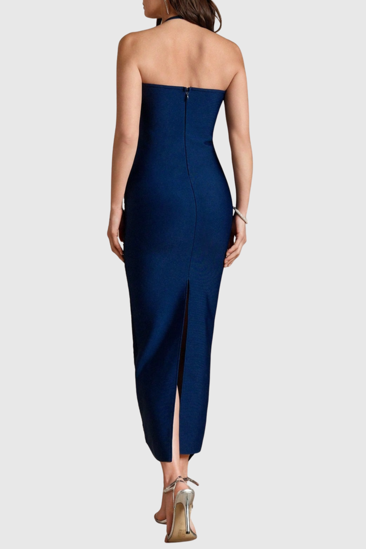 Oriana Halter Fringe Maxi Bandage Dress - Blue