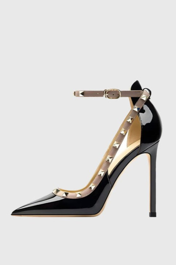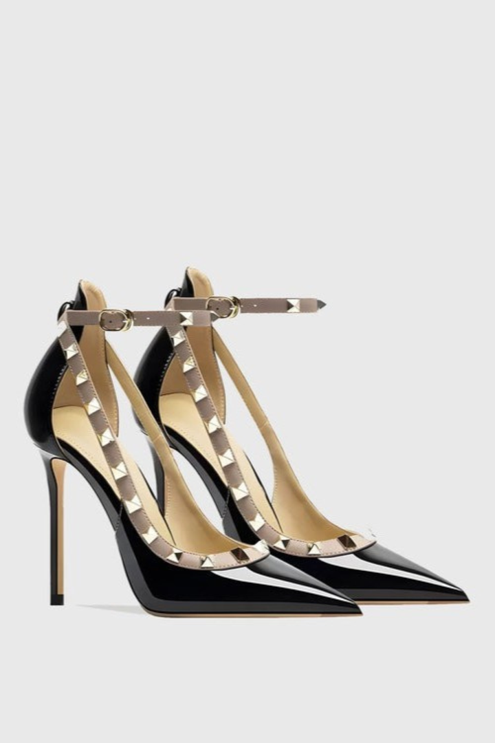 Elevate your ensemble with the Osanya Rivet Embellished Strap Cutout Pumps, where edgy rivet details meet elegant cutouts for a refined yet bold look. The slender strap ensures a secure fit while accentuating your silhouette, making these pumps a perfect choice for sophisticated occasions or stylish daywear. Crafted to seamlessly blend comfort and statement style, they add an impeccable finishing touch to any outfit.