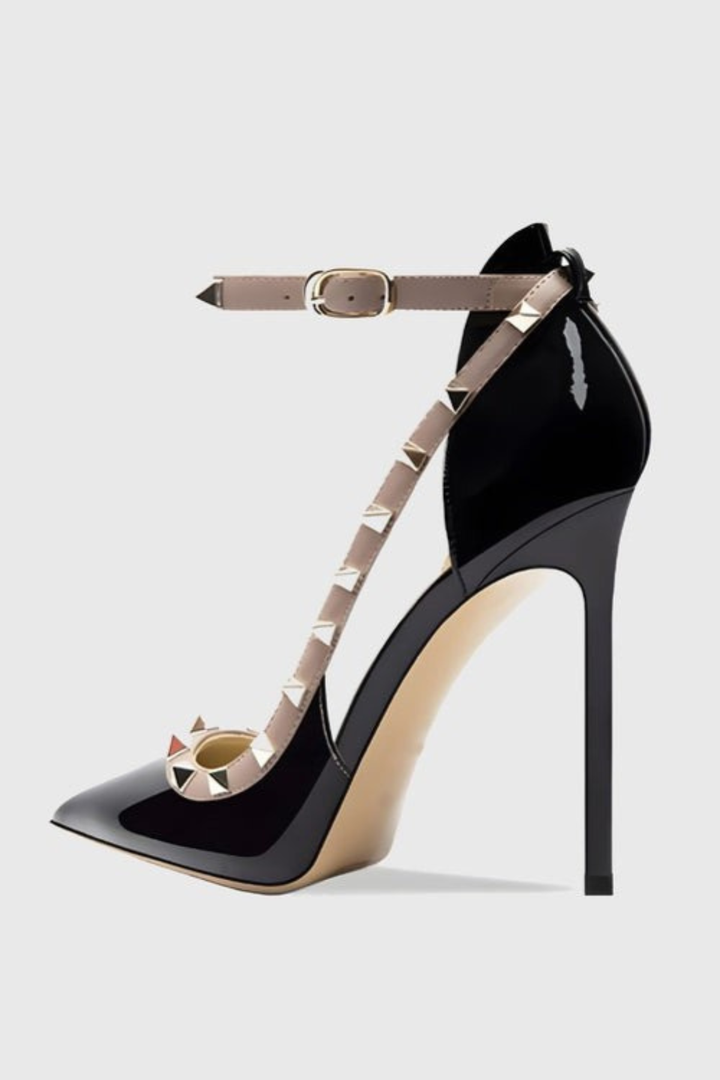 Osanya Rivet Embellished Strap Cutout Pumps - Black