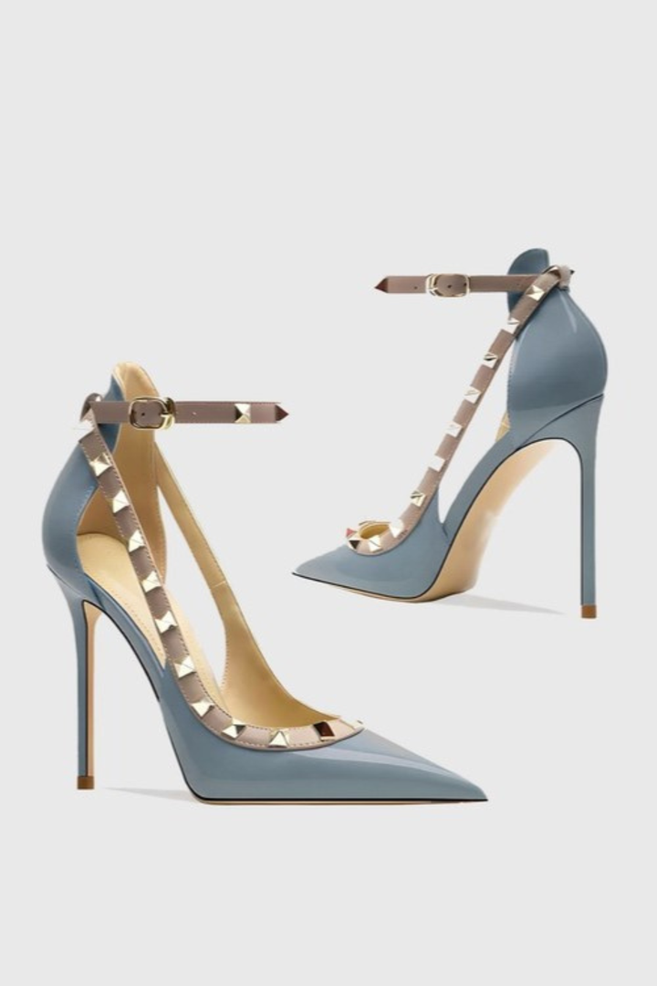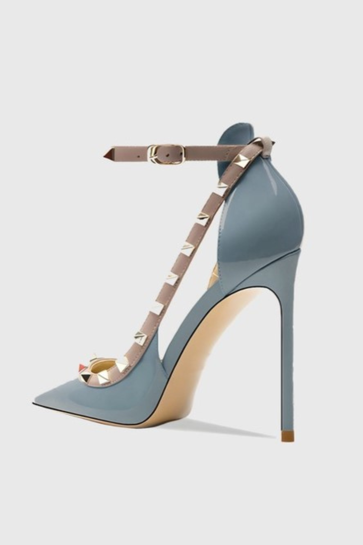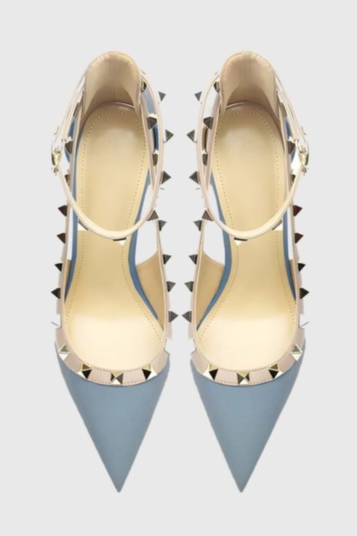 Osanya Rivet Embellished Strap Cutout Pumps - Blue