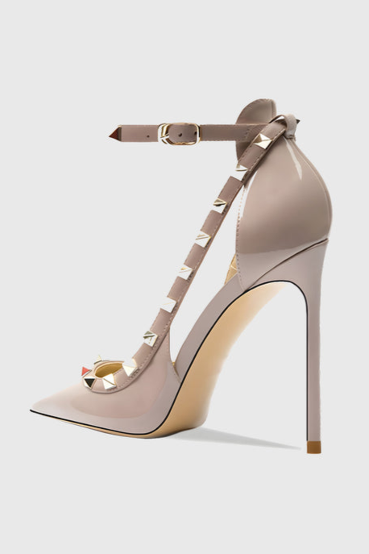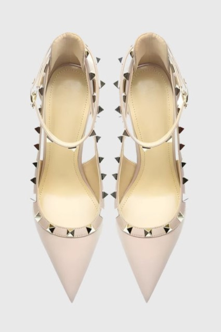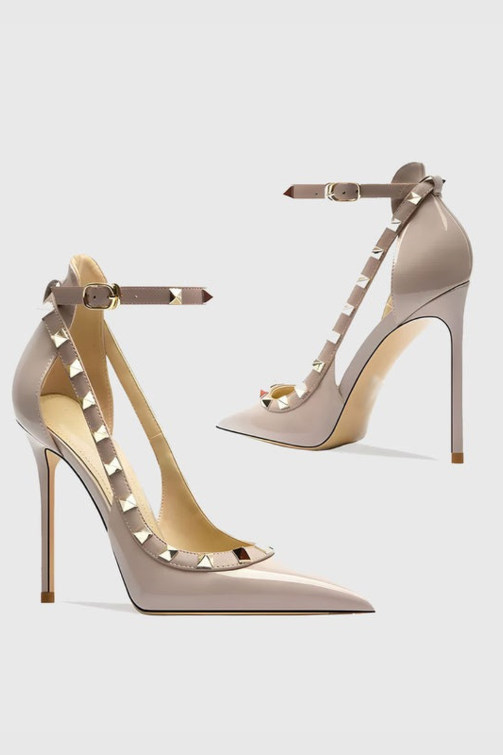Elevate your ensemble with the Osanya Rivet Embellished Strap Cutout Pumps, where edgy rivet details meet elegant cutouts for a refined yet bold look. The slender strap ensures a secure fit while accentuating your silhouette, making these pumps a perfect choice for sophisticated occasions or stylish daywear. Crafted to seamlessly blend comfort and statement style, they add an impeccable finishing touch to any outfit.