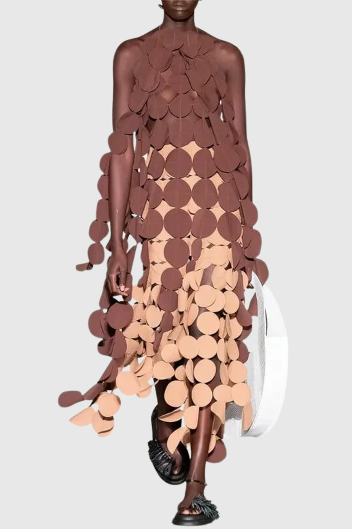 Elevate your wardrobe with the Osman Halter Circle Top, a striking piece that seamlessly blends contemporary design with timeless elegance. Featuring a distinctive halter neckline and geometric circle detailing, this top commands attention while maintaining refined sophistication. The thoughtfully constructed silhouette flatters the figure and transitions effortlessly from daytime sophistication to evening allure. Crafted for the discerning wearer who appreciates architectural design and quality construction, this top pairs beautifully with tailored trousers or flowing skirts for versatile styling options.