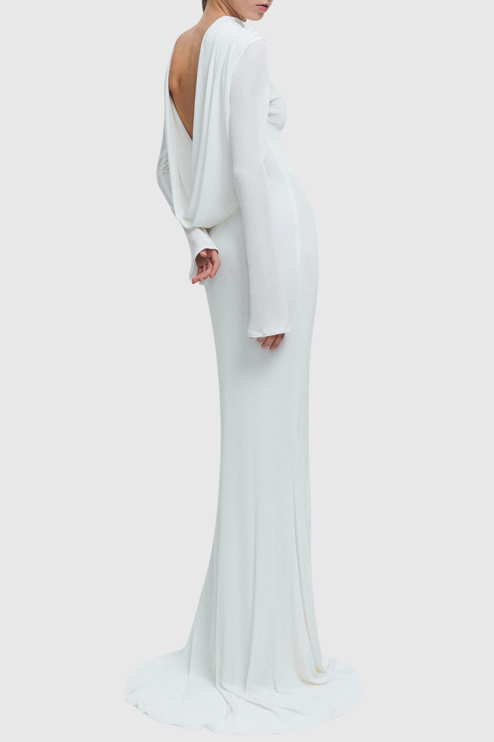 Elevate your evening wardrobe with the Oswin Backless Draped Maxi Dress, a striking piece that seamlessly blends elegance with modern allure. This floor-length gown features a daring backless silhouette and luxurious draped detailing that creates fluid, graceful movement with every step. The sophisticated design makes it an ideal choice for formal events, galas, or upscale celebrations where you want to make a refined statement. Crafted for the confident wearer, this dress combines timeless glamour with contemporary style.