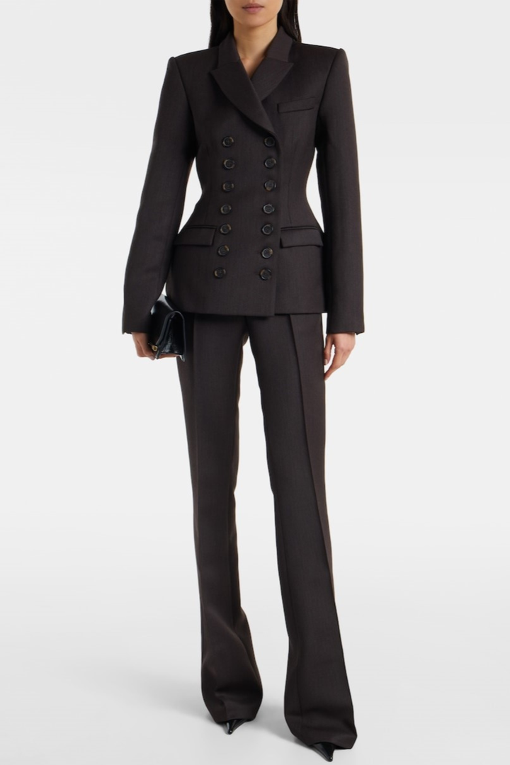 Elevate your wardrobe with the Ozzy Double Breasted Blazer, a timeless piece that seamlessly transitions from boardroom to evening occasions. Crafted with meticulous attention to detail, this sophisticated blazer features a classic double-breasted silhouette that commands presence and confidence. The structured tailoring creates a refined silhouette while the quality construction ensures lasting wear. Perfect for layering over dresses or pairing with tailored trousers, the Ozzy delivers understated elegance with every wear. An investment piece that transcends seasonal trends.