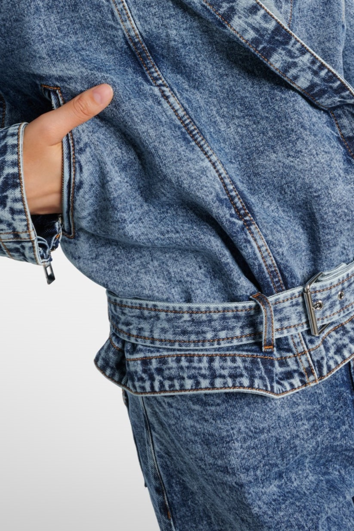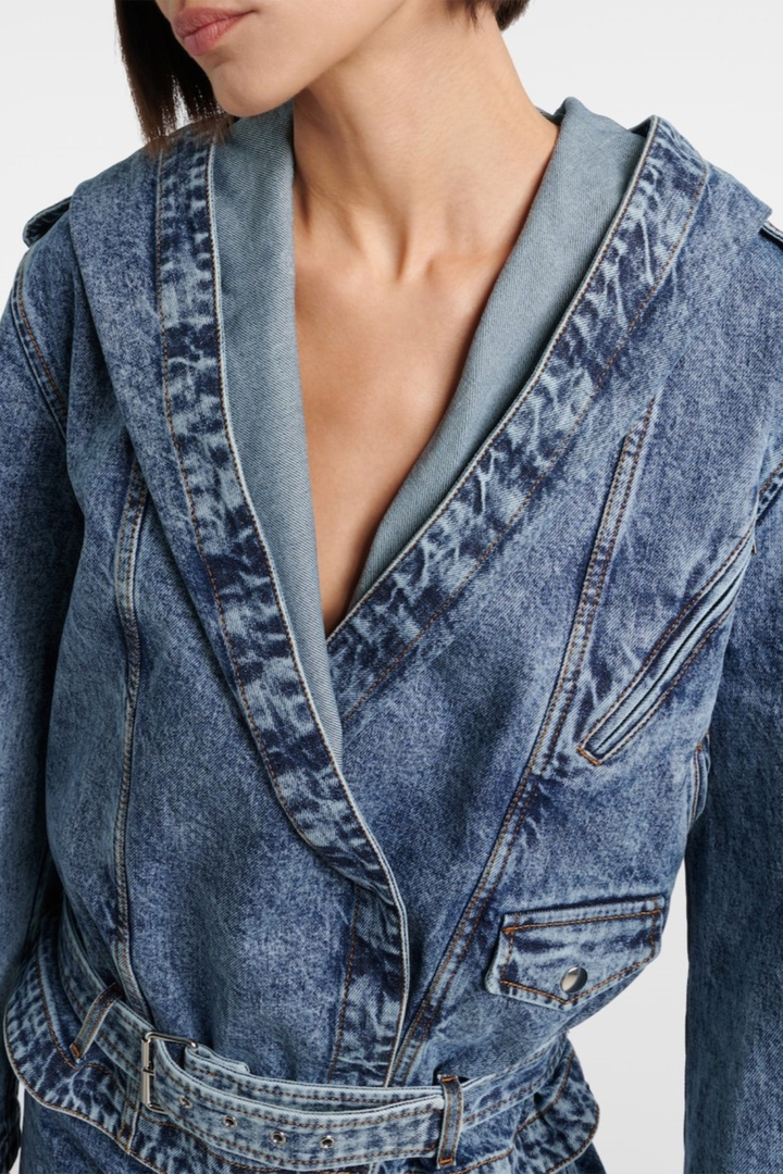Indulge in luxury with our Pamina Belted Hooded Denim Jacket. Made from high-quality denim, this jacket boasts a stylish belted design and a cozy hood to keep you warm. It's perfect for those who appreciate both fashion and function. Elevate your wardrobe with this sophisticated and exclusive piece.