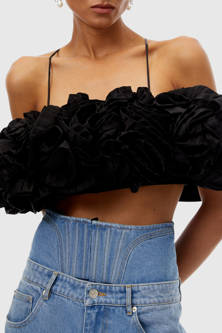 Elevate your wardrobe with our Phebe Floral Appliqué Cropped Top. Crafted with intricate floral appliqués, this top exudes elegance and sophistication. Its cropped design adds a touch of playfulness, making it perfect for any occasion. Make a statement with this premium piece that will surely turn heads.