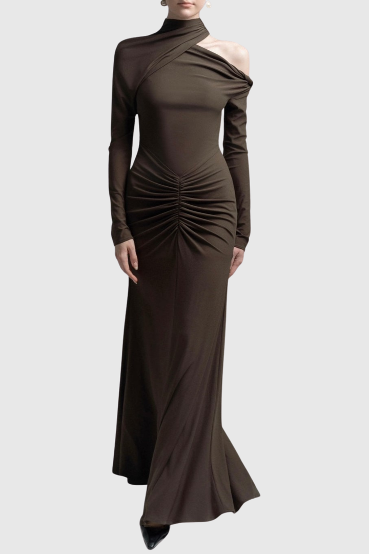 Pieda Cutout Ruched Maxi Dress - Chocolate