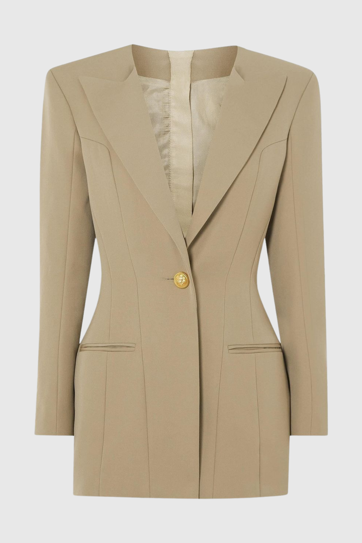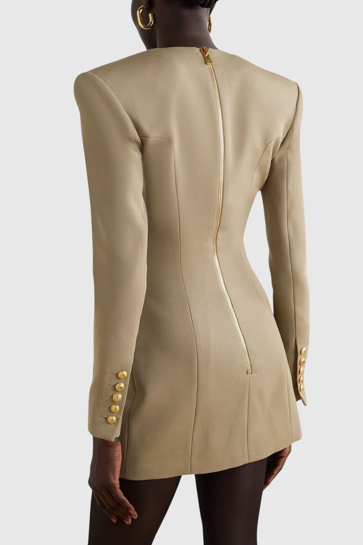 Elevate your wardrobe with the Posie Wool mini Blazer Dress, a refined piece that seamlessly blends tailored elegance with contemporary ease. Crafted from premium wool, this sophisticated silhouette features structured blazer detailing that commands attention while maintaining an effortlessly polished aesthetic. The mini length offers versatility for day-to-night styling, whether paired with heels for evening occasions or layered with accessories for a modern, fashion-forward look. Perfect for those who appreciate timeless design with an understated luxury appeal.