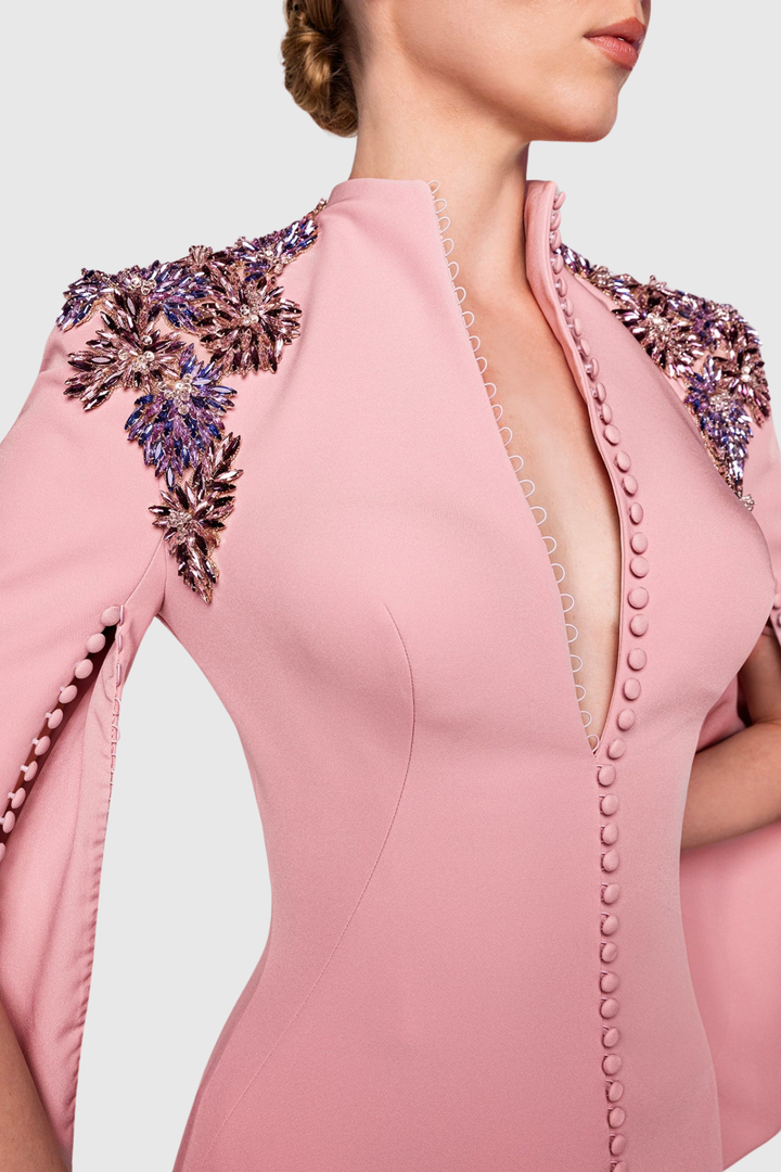 Quara Crystal Shoulder Buttoned Split Maxi Dress
