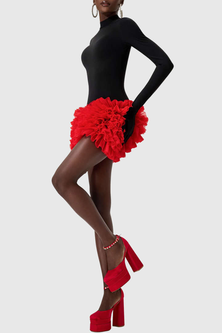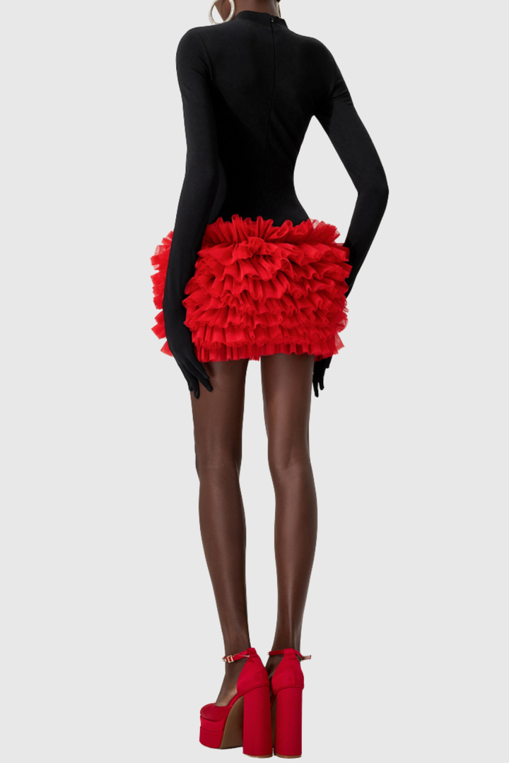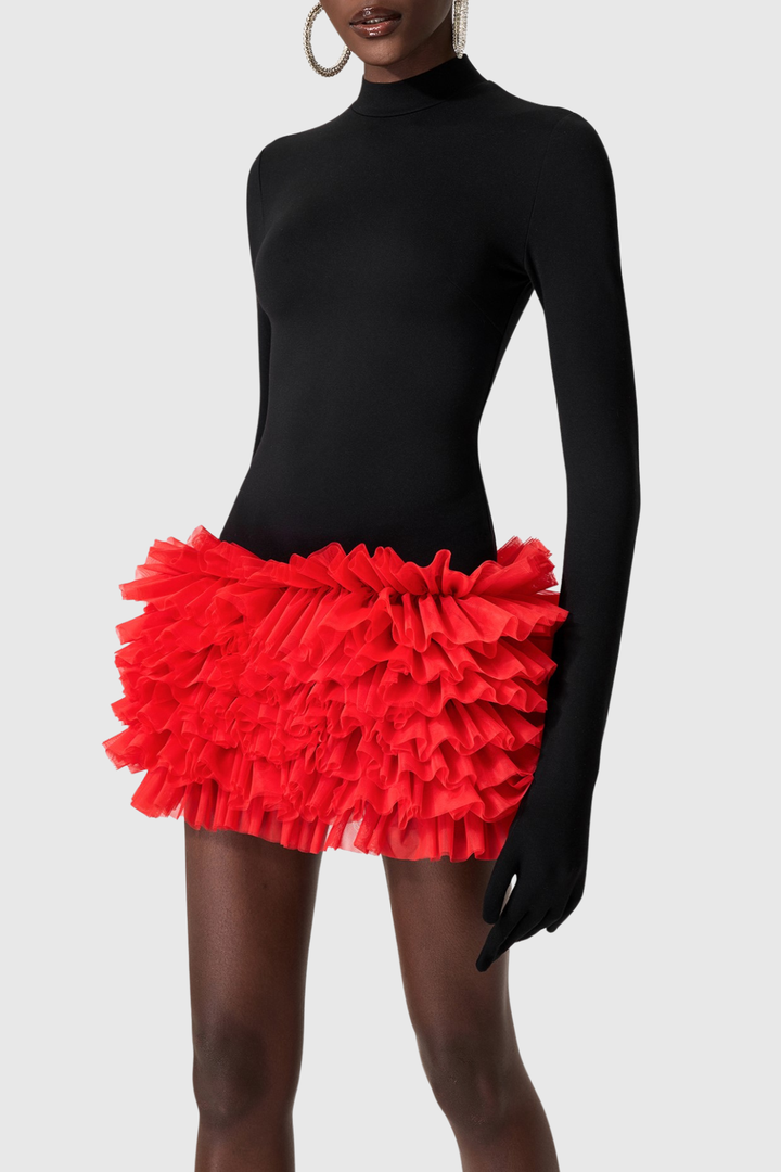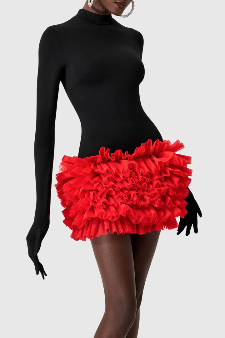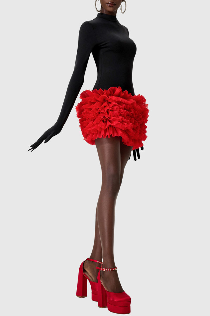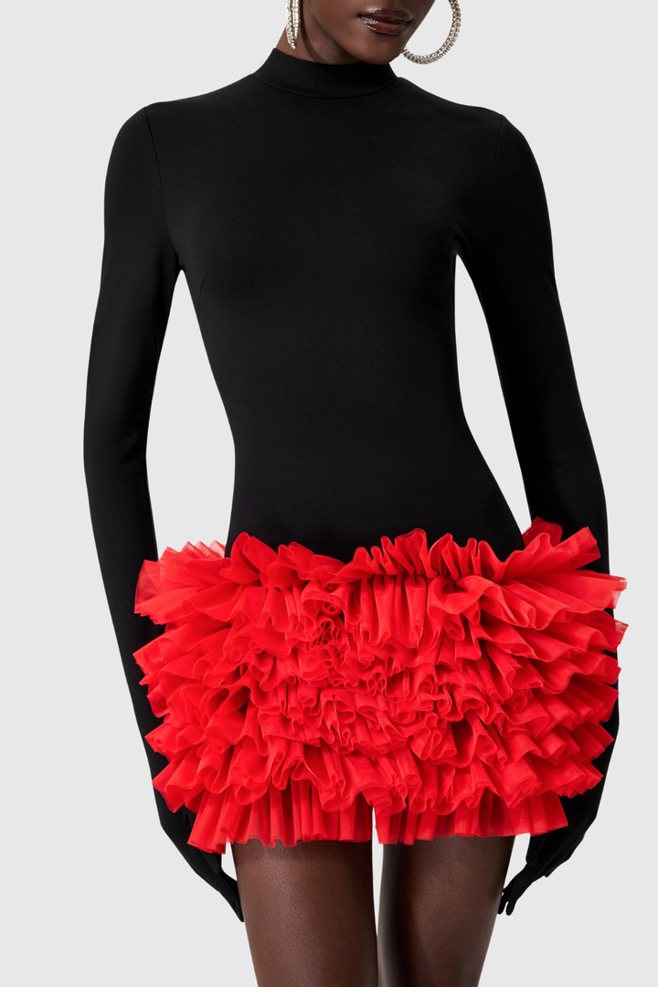 Elevate your wardrobe with the Raiden Ruffle Contrast Color Mini Dress, a sophisticated piece that seamlessly blends contemporary design with timeless elegance. Featuring delicate ruffled detailing and striking contrast color blocking, this mini dress creates a refined silhouette perfect for elevated casual occasions or evening outings. The thoughtful color combination adds visual interest while maintaining an understated luxury aesthetic. Versatile enough to transition from day to night, this dress pairs effortlessly with heels, flats, or statement accessories for a polished, curated look.
