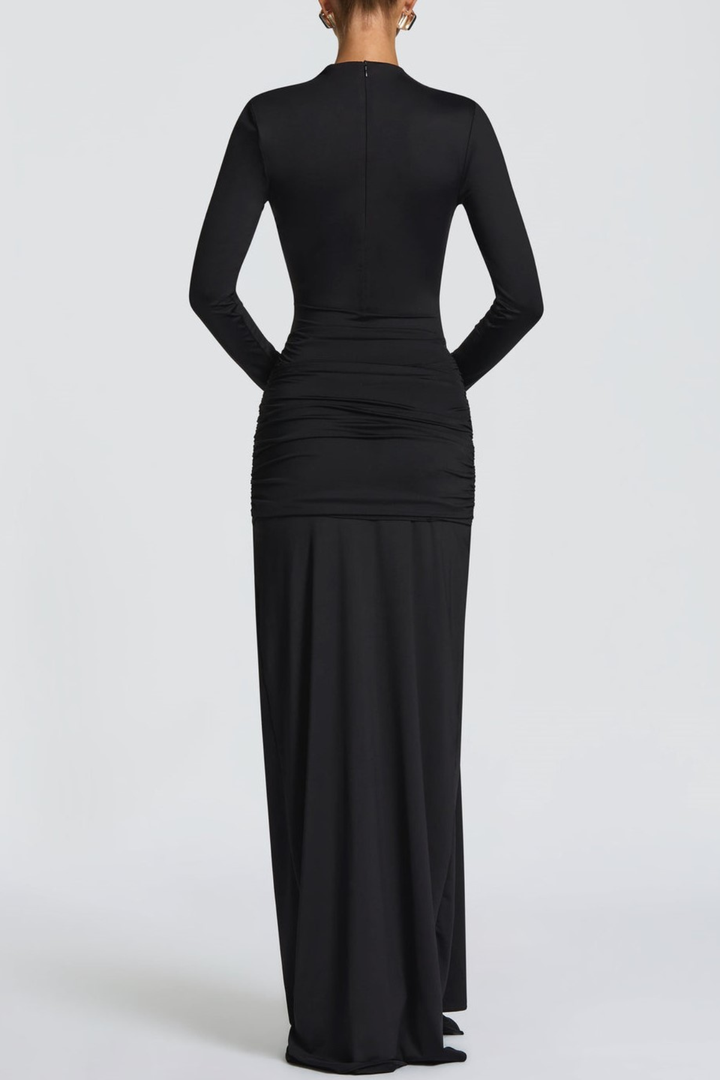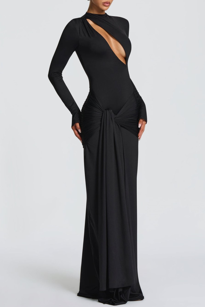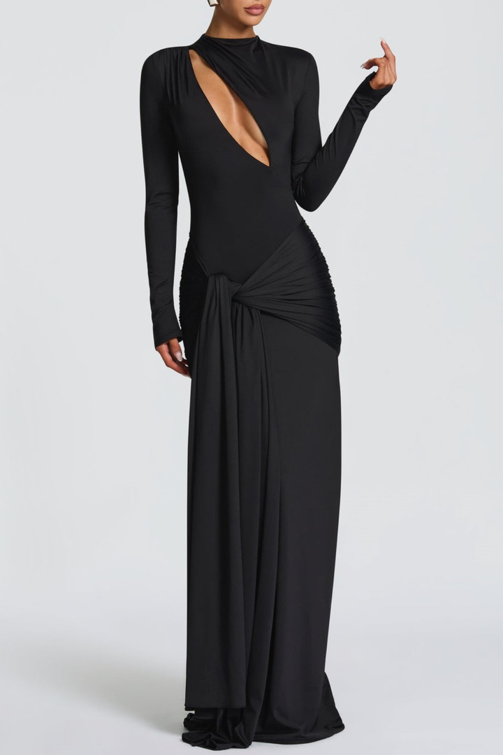 Raluca Cutout Draped Maxi Dress Elevate your evening wardrobe with this sophisticated maxi dress, featuring an elegant cutout design and gracefully draped silhouette. The flowing fabric creates a refined, elongated line that flatters the figure while maintaining an air of understated luxury. Perfect for formal events, upscale dinners, or special occasions where timeless elegance is paramount. The strategic cutout detail adds contemporary interest without compromising the dress's polished aesthetic. A versatile investment piece that transitions seamlessly from season to season.
