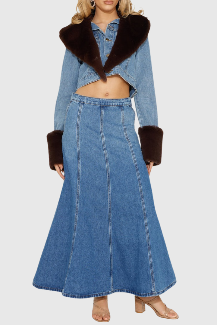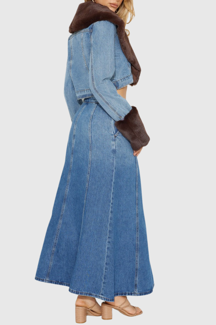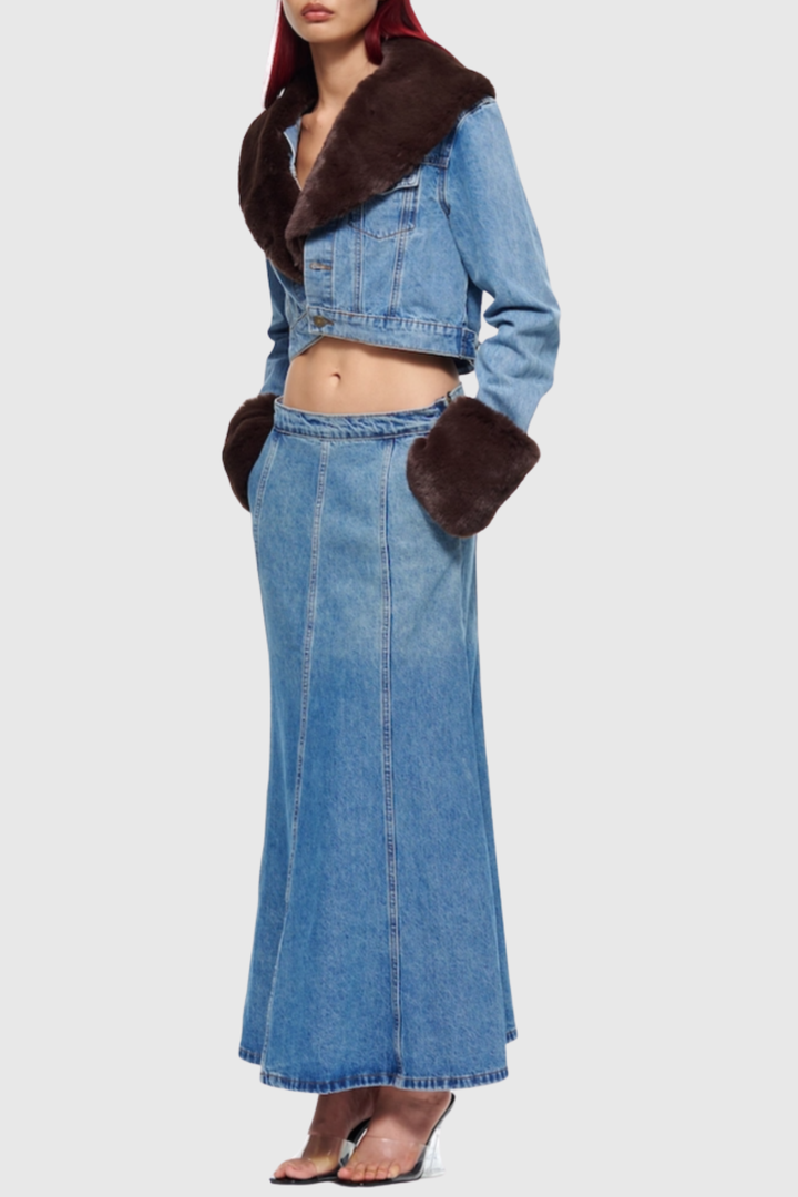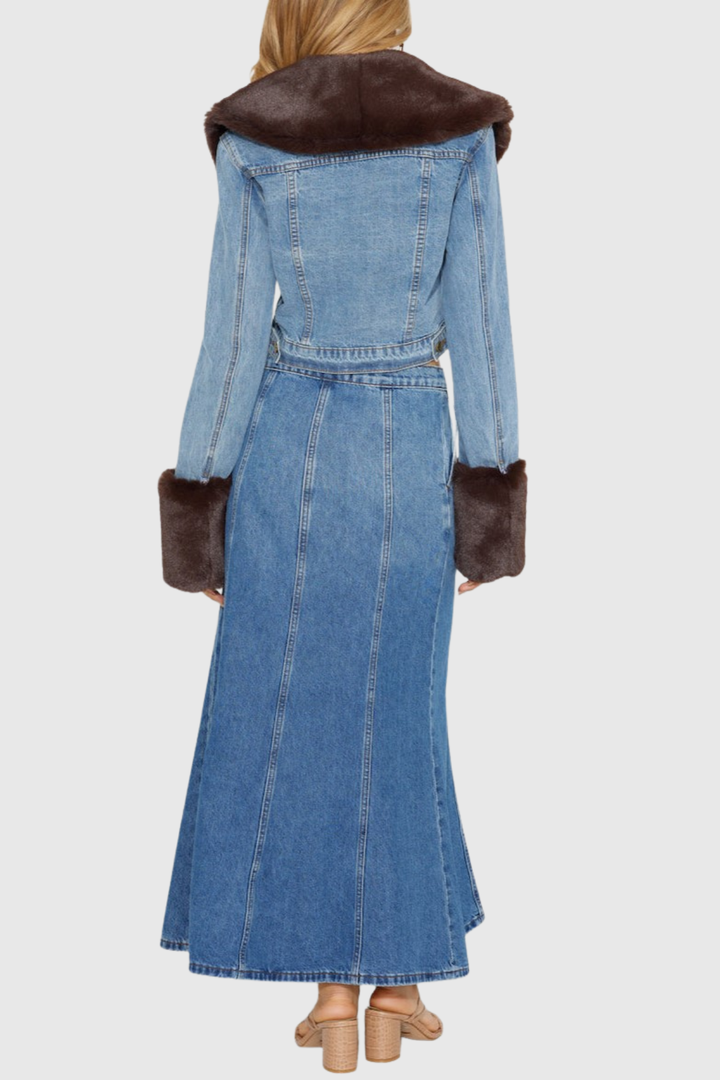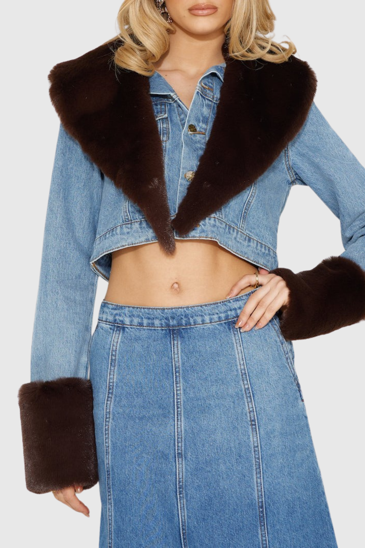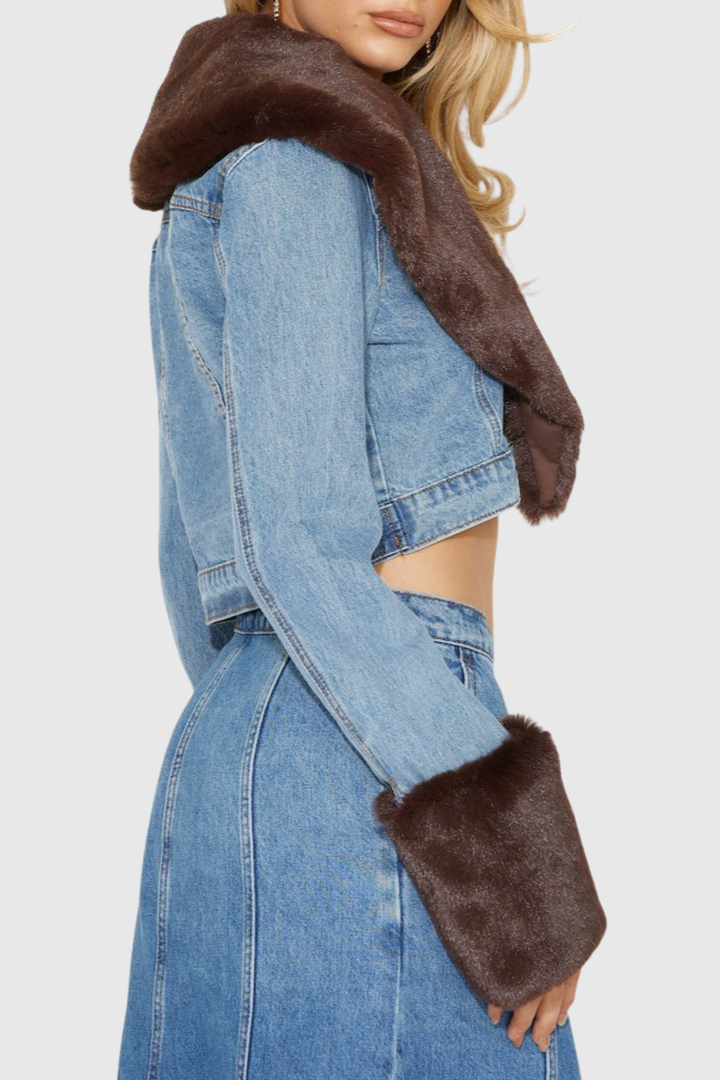 Elevate your denim game with the Rejoice Faux Fur Denim Jacket, where classic workwear meets luxurious texture. This refined piece features sumptuous faux fur trim that adds an unexpected layer of sophistication to a timeless denim silhouette. Perfect for transitional seasons, it effortlessly bridges casual and polished aesthetics. The combination of sturdy denim and plush fur creates a statement piece that works equally well over weekend wear or layered with tailored pieces. A versatile investment that transforms any wardrobe with understated elegance.