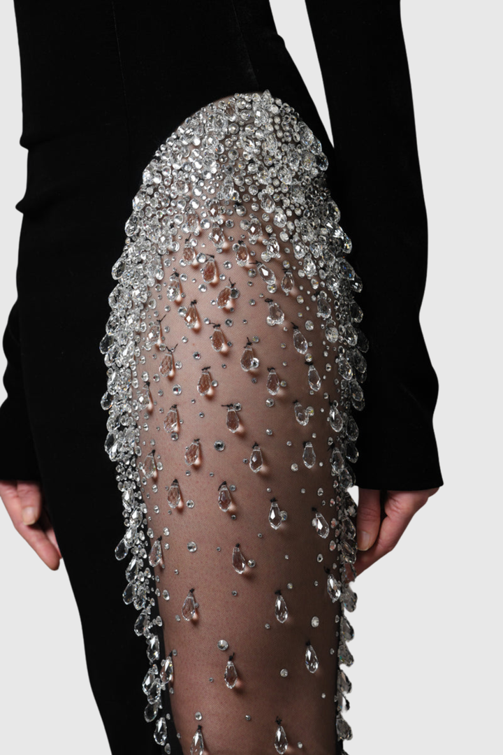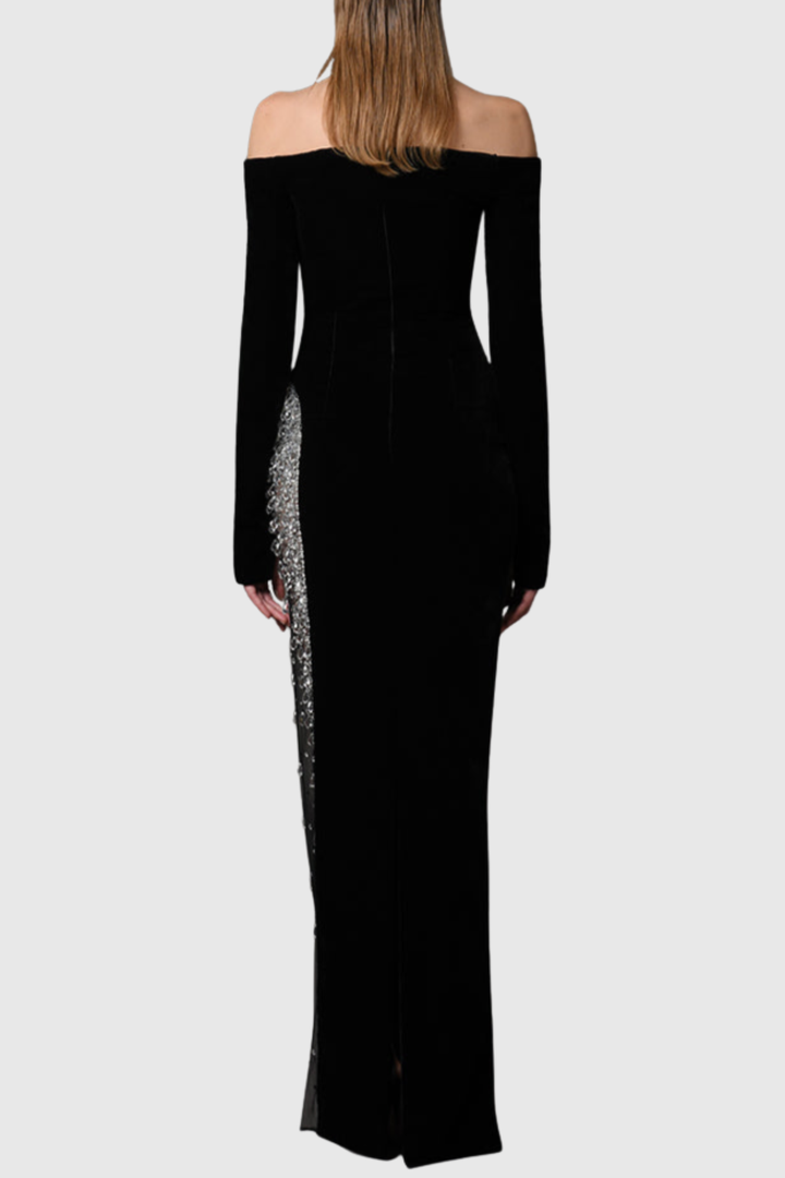 Remiel Off Shoulder Crystal Embellished Maxi Dress