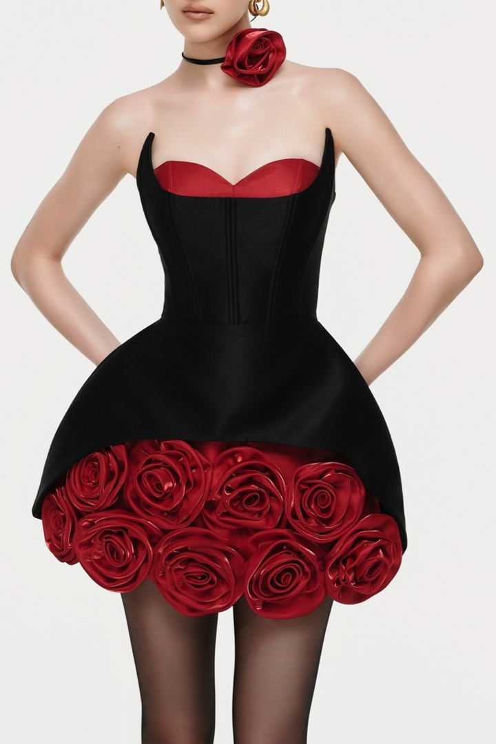 Remiel Strapless Rose Appliqué Corset Mini Dress - Red