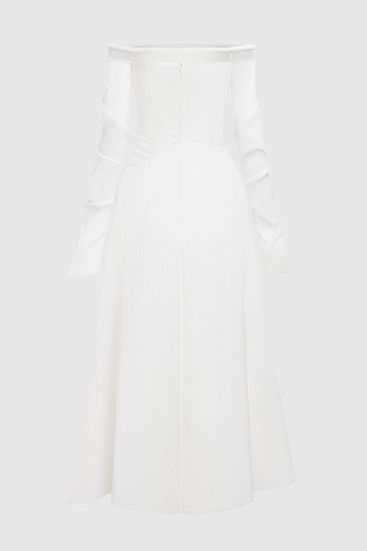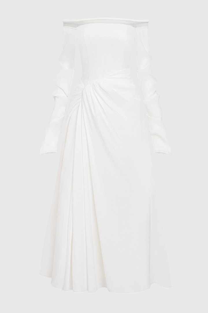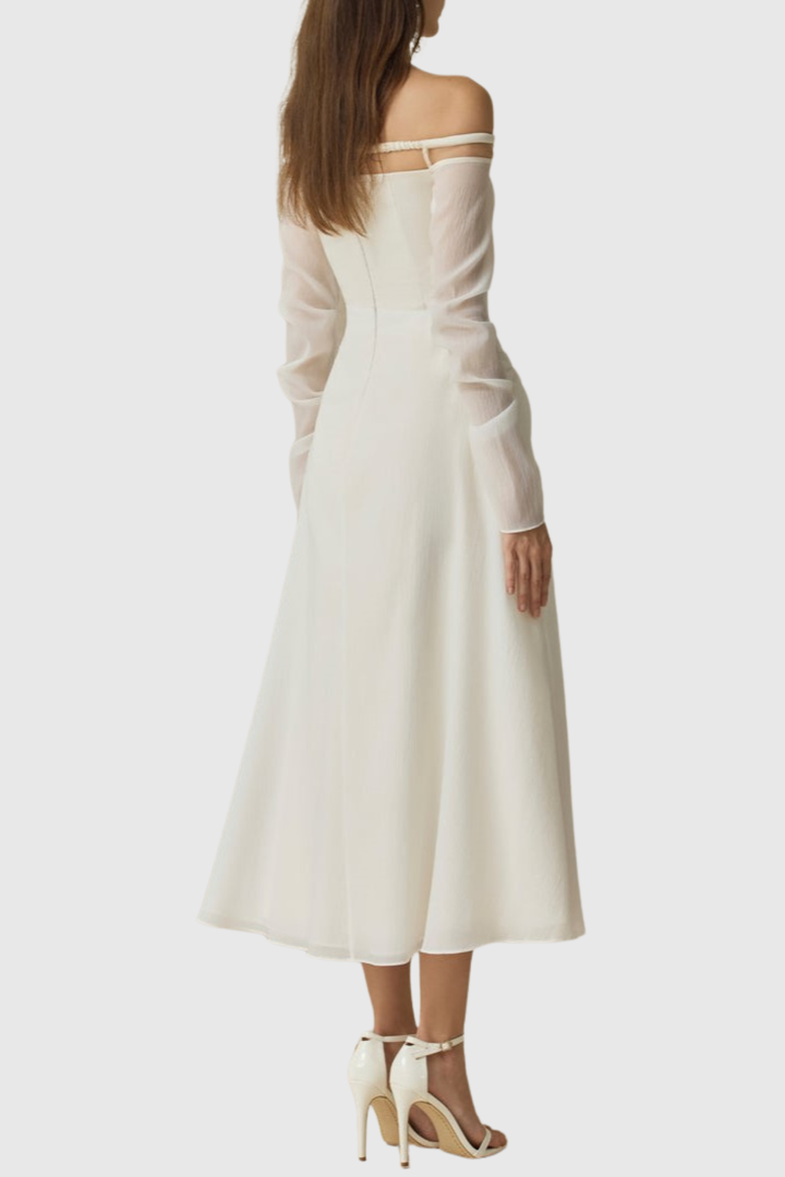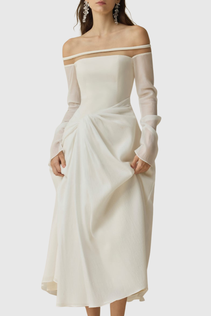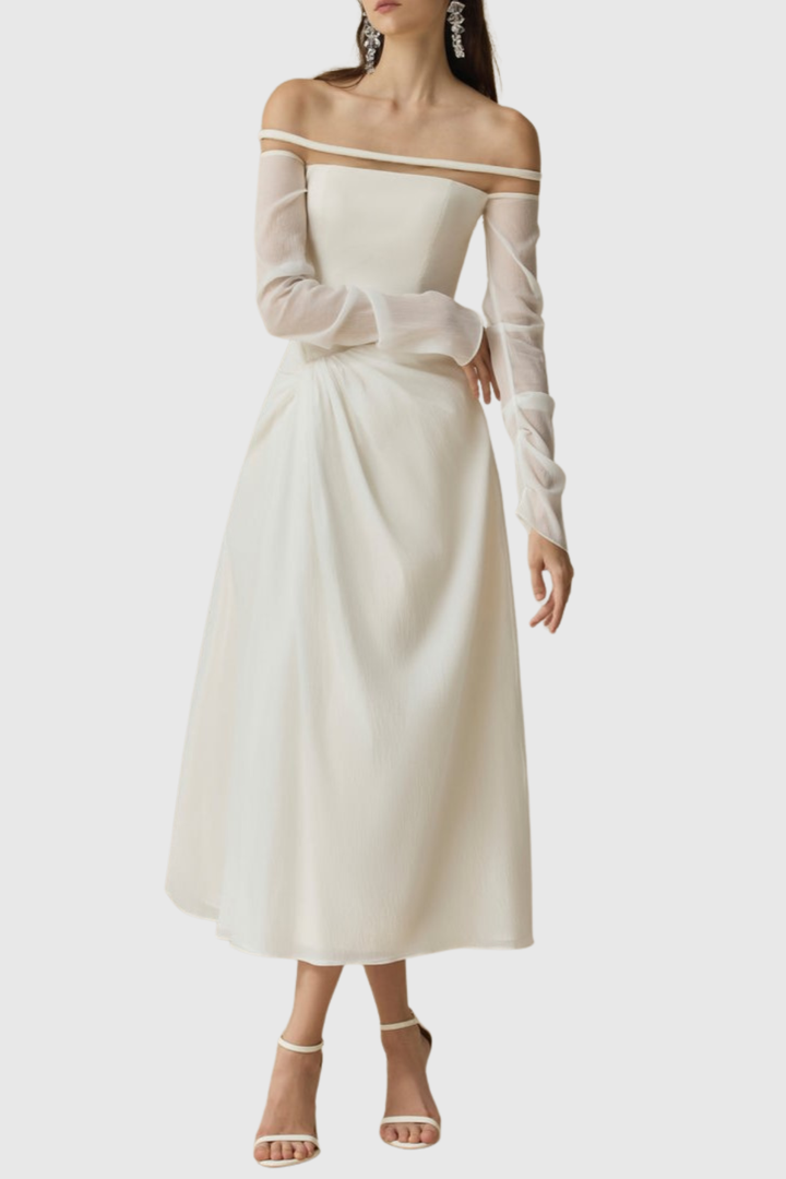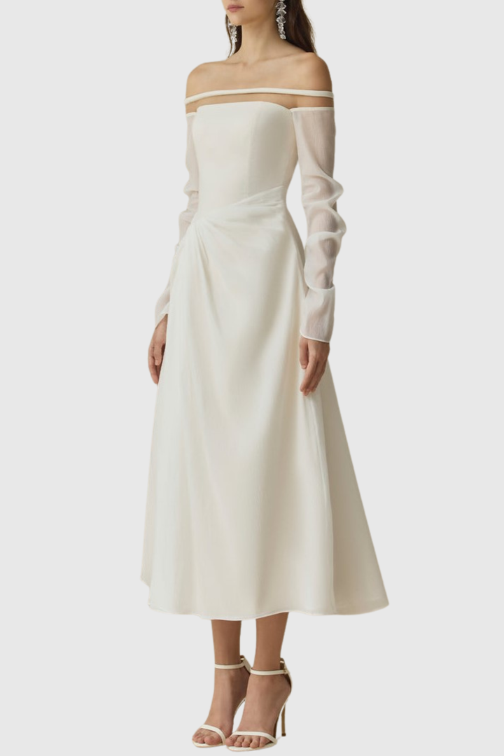 The Renaa Off Shoulder Twisted Midi Dress combines contemporary elegance with refined simplicity. This striking piece features an off-shoulder neckline that gracefully frames the collarbone, while an artful twisted detail at the bodice adds visual intrigue and dimension. The midi length offers a sophisticated silhouette that transitions seamlessly from daytime occasions to evening events. Crafted for the modern woman who appreciates understated luxury, this dress delivers timeless appeal with a contemporary edge. Perfect for making a polished statement at any gathering.