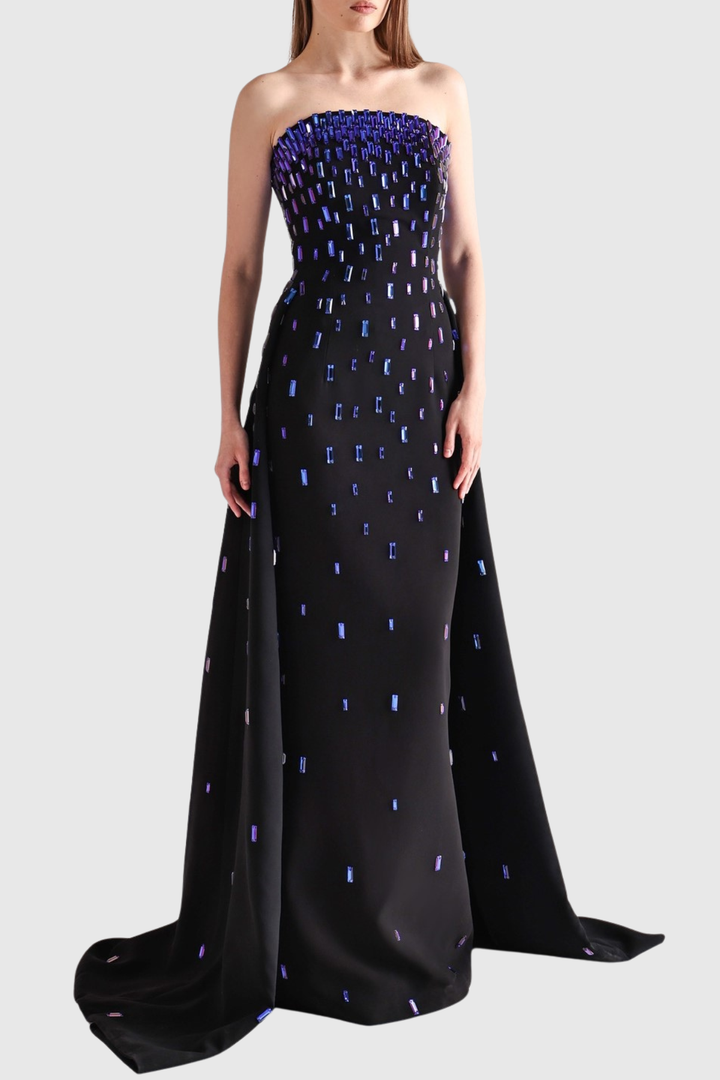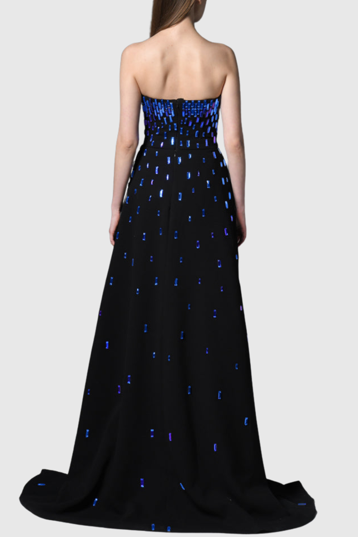 Ronan Strapless Blue Crystal Embellished Maxi Dress