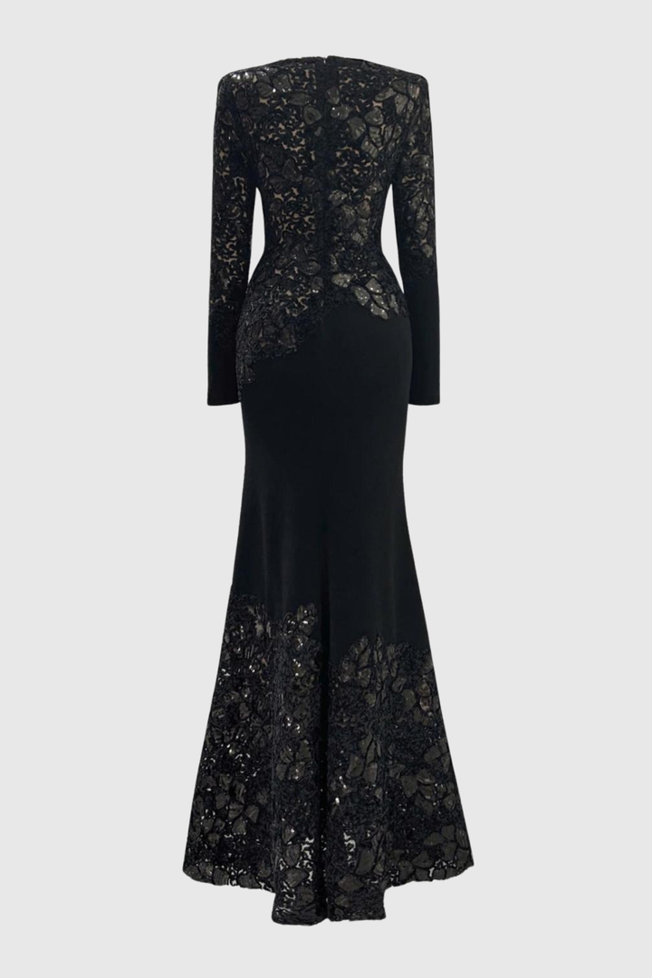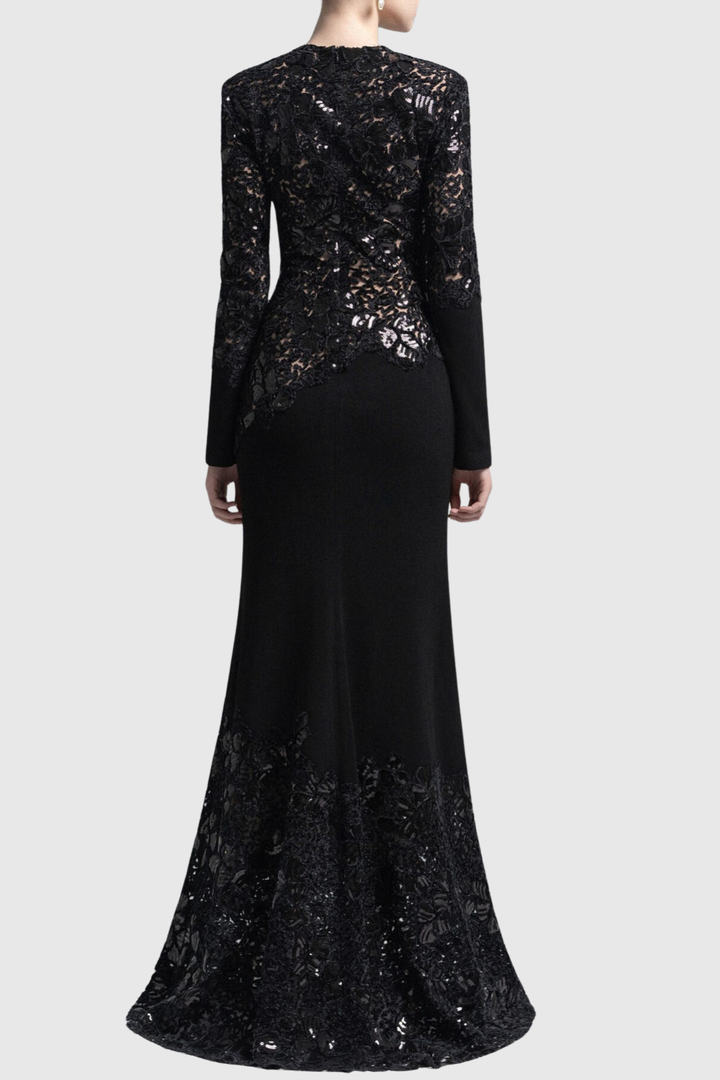 Safra Lace Sequin Satin Maxi Dress - Black