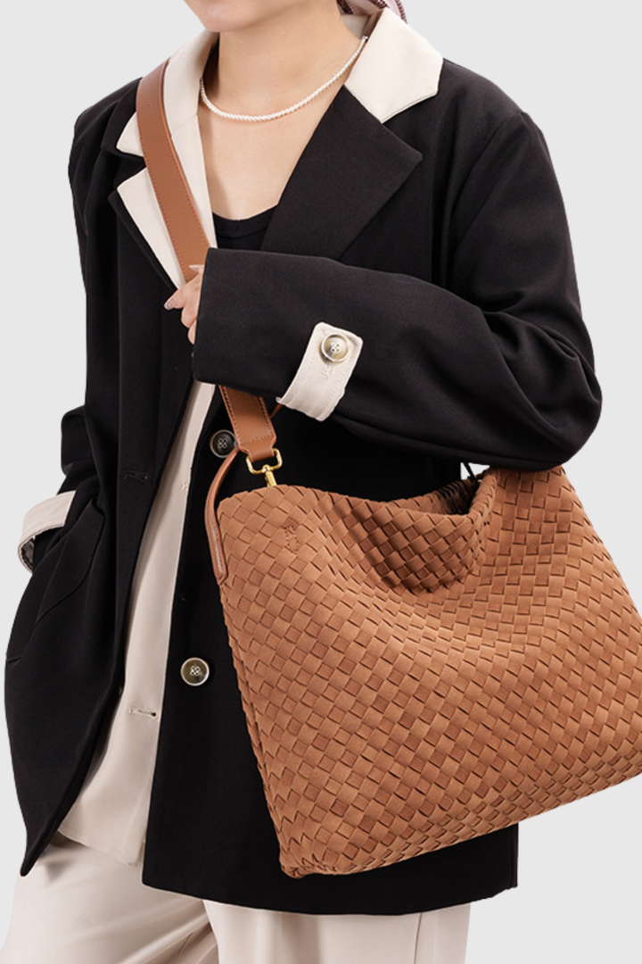 Elevate your everyday carry with the Samiya Suded Woven Tote Bag, a refined accessory that seamlessly blends artisanal craftsmanship with modern elegance. Meticulously woven with premium suded materials, this tote showcases exceptional texture and durability while maintaining a sophisticated aesthetic. The spacious interior accommodates your daily essentials, while the structured silhouette ensures a polished appearance whether heading to the office or weekend outings. A timeless investment piece that transcends seasonal trends and complements any wardrobe with understated luxury.