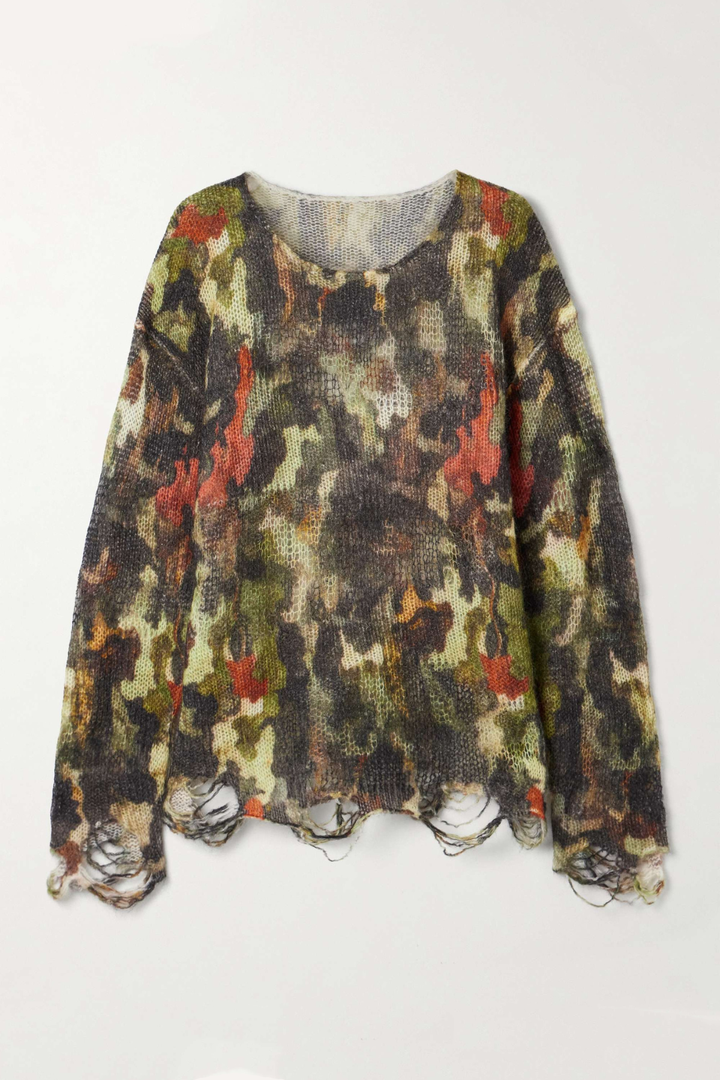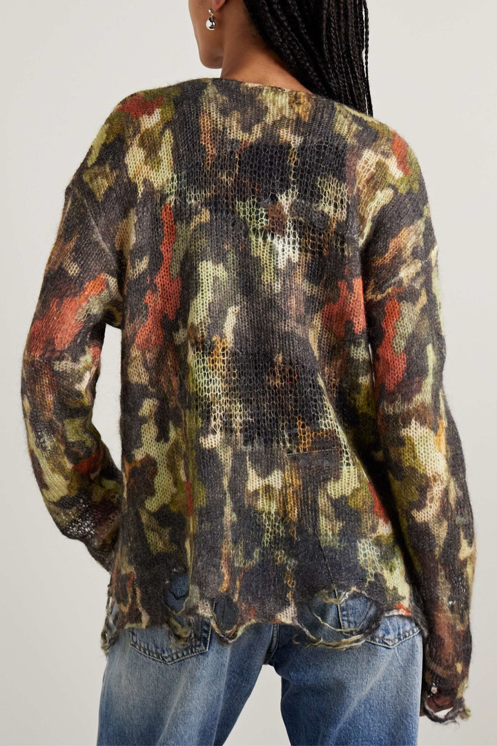 Shirla Distressed Camouflage Knit Sweater