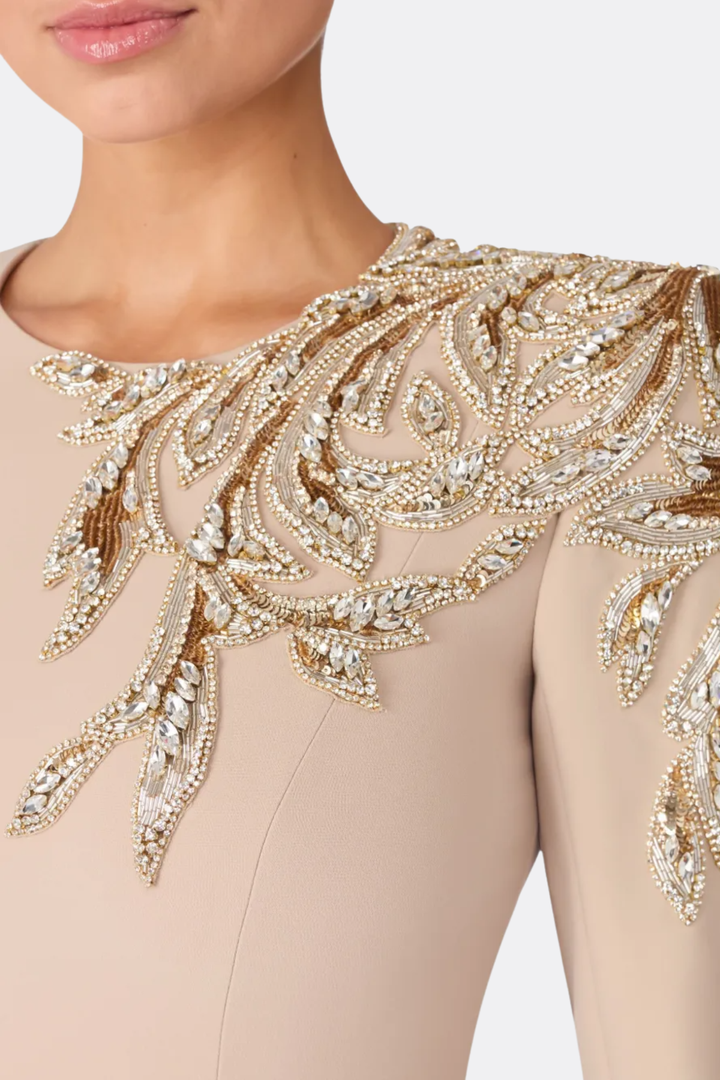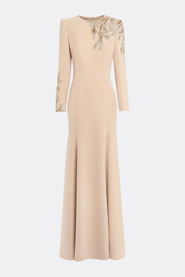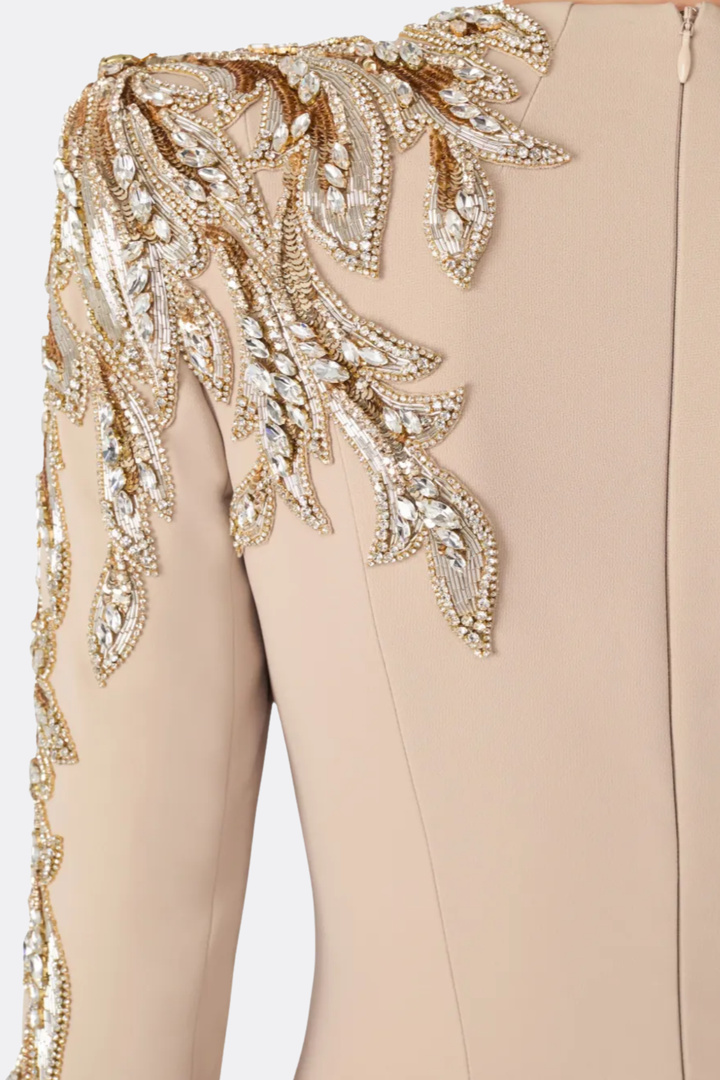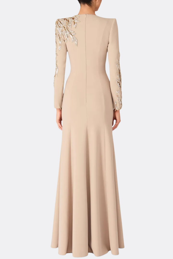 Sigria Crystal Leaf-embellished Maxi Dress - Beige