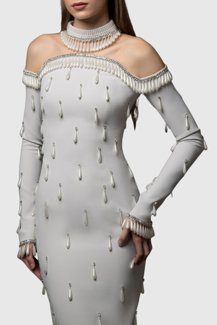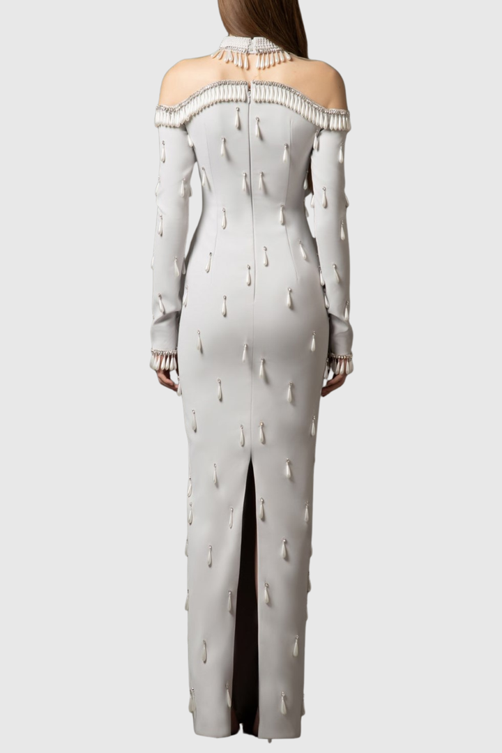 Elevate your evening wardrobe with the Slaia Pearl Embellished Maxi Dress, a timeless piece that seamlessly blends elegance with contemporary style. Adorned with lustrous pearl embellishments that catch the light beautifully, this floor-length gown offers a refined silhouette perfect for galas, weddings, and formal occasions. The flowing maxi cut provides graceful movement while maintaining a polished appearance, making it an investment piece that transcends seasons. Whether you're attending a black-tie event or celebrating a milestone moment, this dress delivers understated luxury and sophisticated charm.