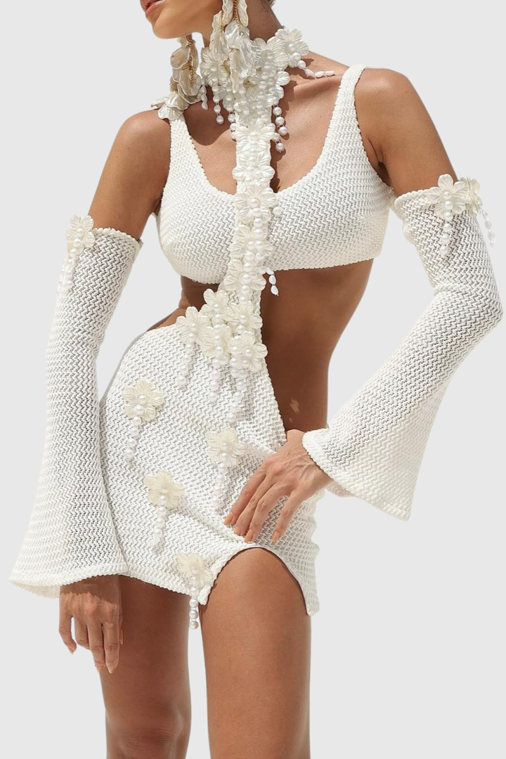Elevate your evening wardrobe with the Taran Pearl Embellished Crochet Mini Dress, a refined piece that seamlessly blends artisanal craftsmanship with contemporary elegance. Delicate crochet detailing forms the foundation of this dress, while lustrous pearl embellishments add a touch of understated luxury. The mini silhouette offers a modern, flattering cut perfect for cocktail events, date nights, or upscale casual occasions. Versatile enough to pair with heels for formal settings or minimalist accessories for a relaxed vibe, this dress makes a sophisticated statement without demanding attention.