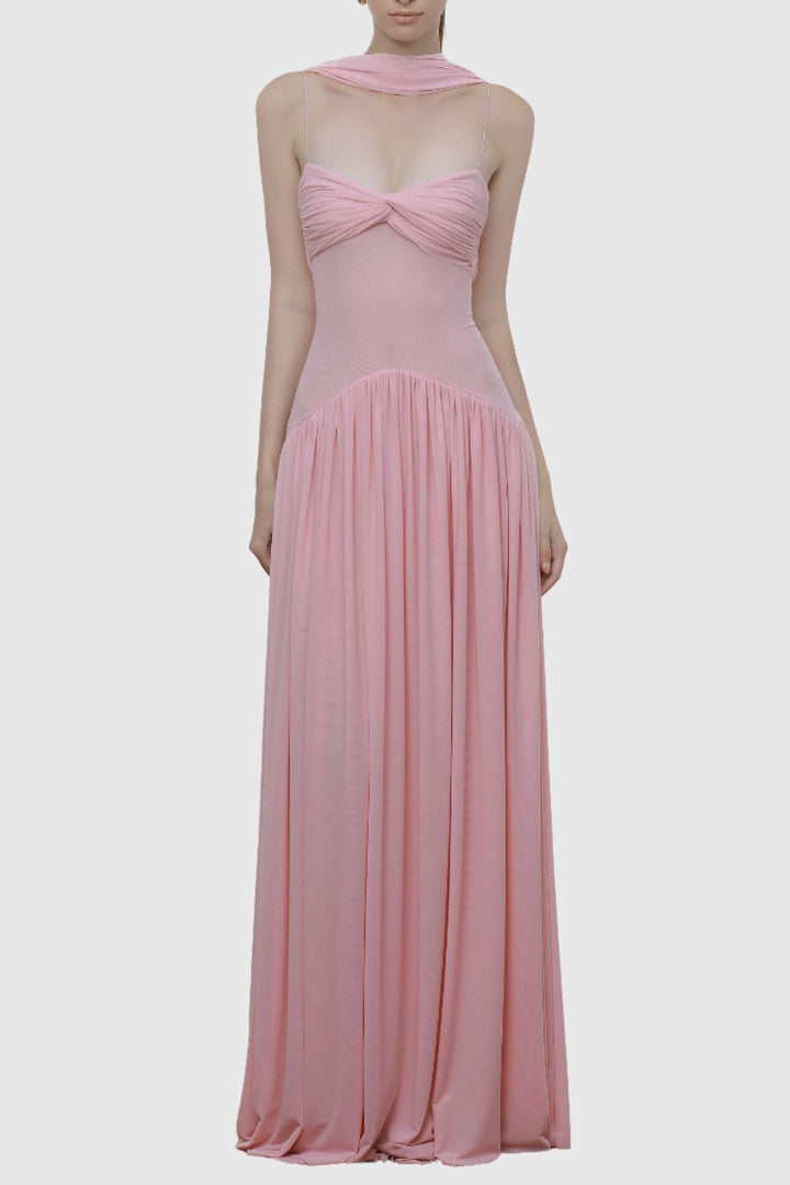 Tasmia Mesh Strapless Maxi Dress - Pink