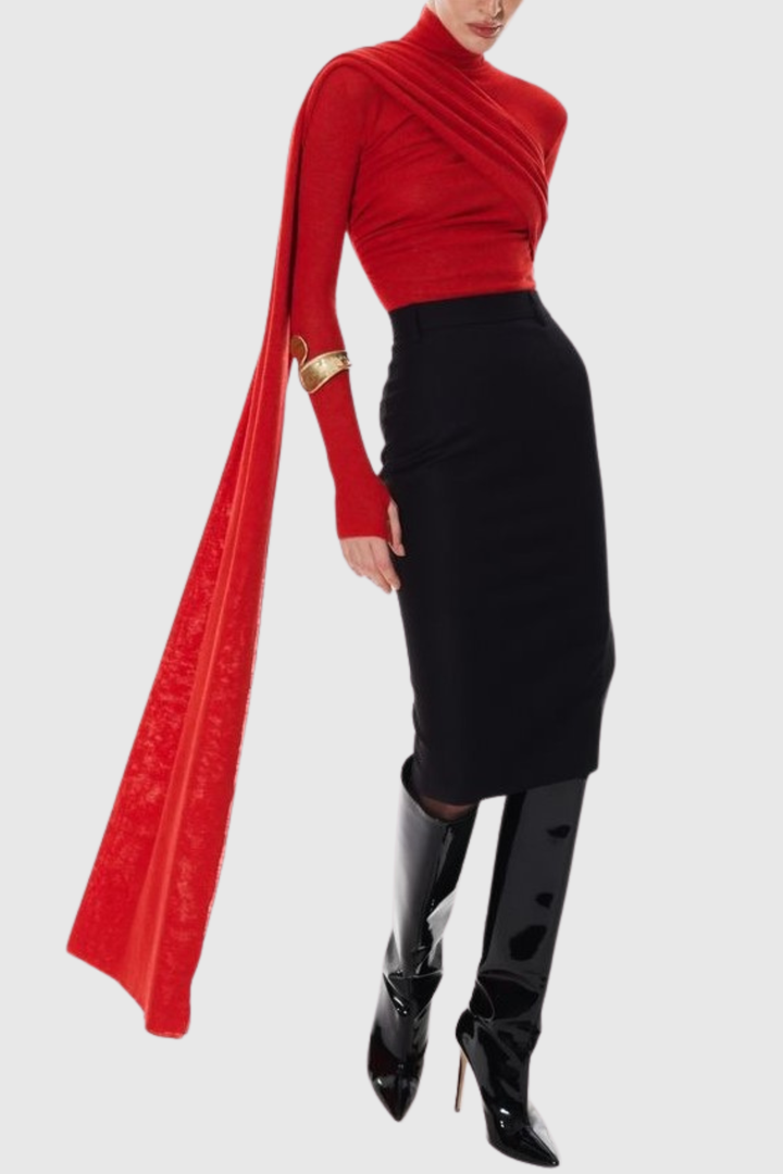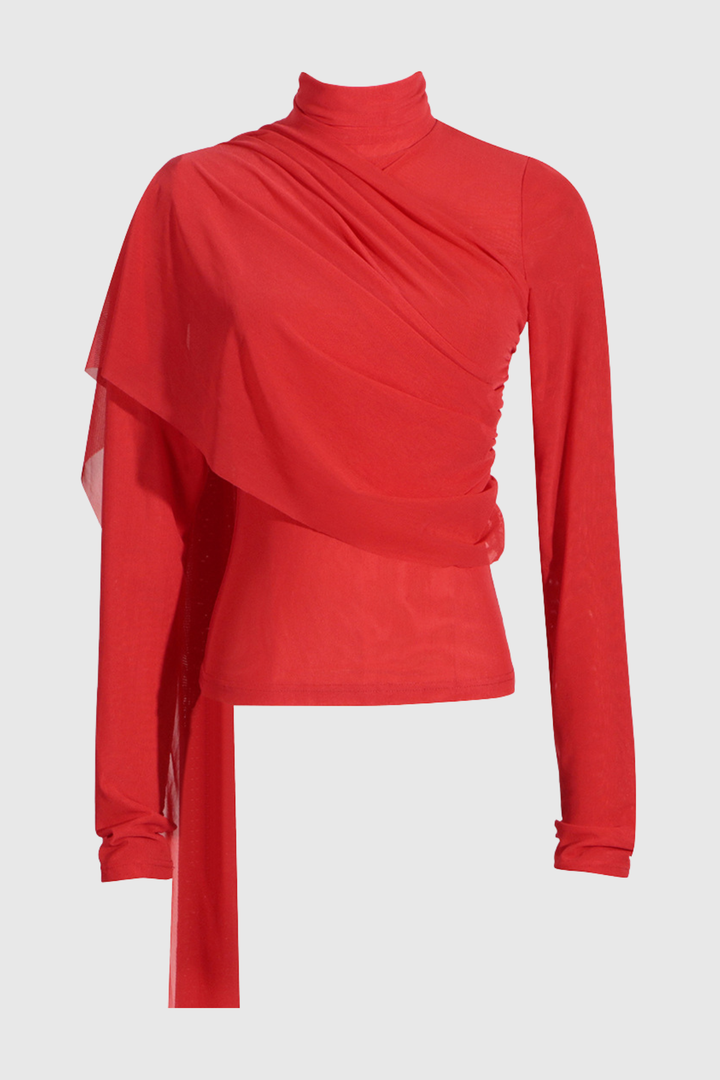 Telaka Asymmetric Mesh Wrap Top Elevate your wardrobe with this striking asymmetric mesh wrap top, where modern design meets refined elegance. The asymmetrical silhouette creates a flattering, dynamic look that transitions seamlessly from day to evening, while the delicate mesh fabric adds an air of sophistication and movement. The wrap styling offers versatile wear options and a customizable fit that adapts to your frame. Perfect for those who appreciate contemporary fashion with an understated luxury appeal, this piece pairs effortlessly with tailored trousers, sleek skirts, or layered basics for a polished ensemble.