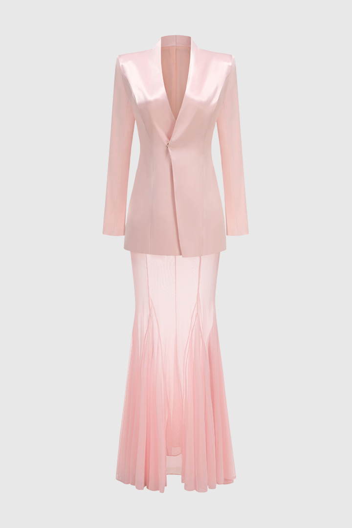 Elevate your wardrobe with the Terlin Satin Jacket & Skirt Set, crafted from smooth satin for a refined sheen. The tailored jacket offers a polished silhouette, perfectly complemented by a matching skirt that balances elegance and modern style. This coordinated set is ideal for sophisticated occasions where impeccable taste is essential.